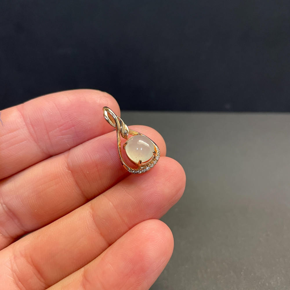 瀚玉珠寶 天然翡翠 冰種蛋面翡翠墜子 925純銀 玫瑰金色 天然A貨翡翠緬甸玉