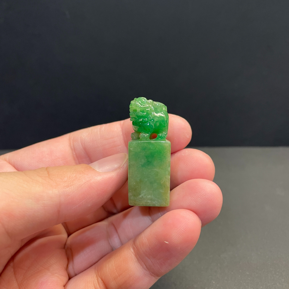 瀚玉珠寶 老三彩貔貅印章 天然翡翠印章 方章 緬甸玉印 印紐 三彩翡翠 貔貅招財