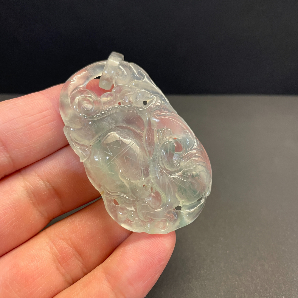 瀚玉珠寶 玻璃種放光翡翠 龍咬珠 起光細膩緬甸玉 附上賴泰安證書