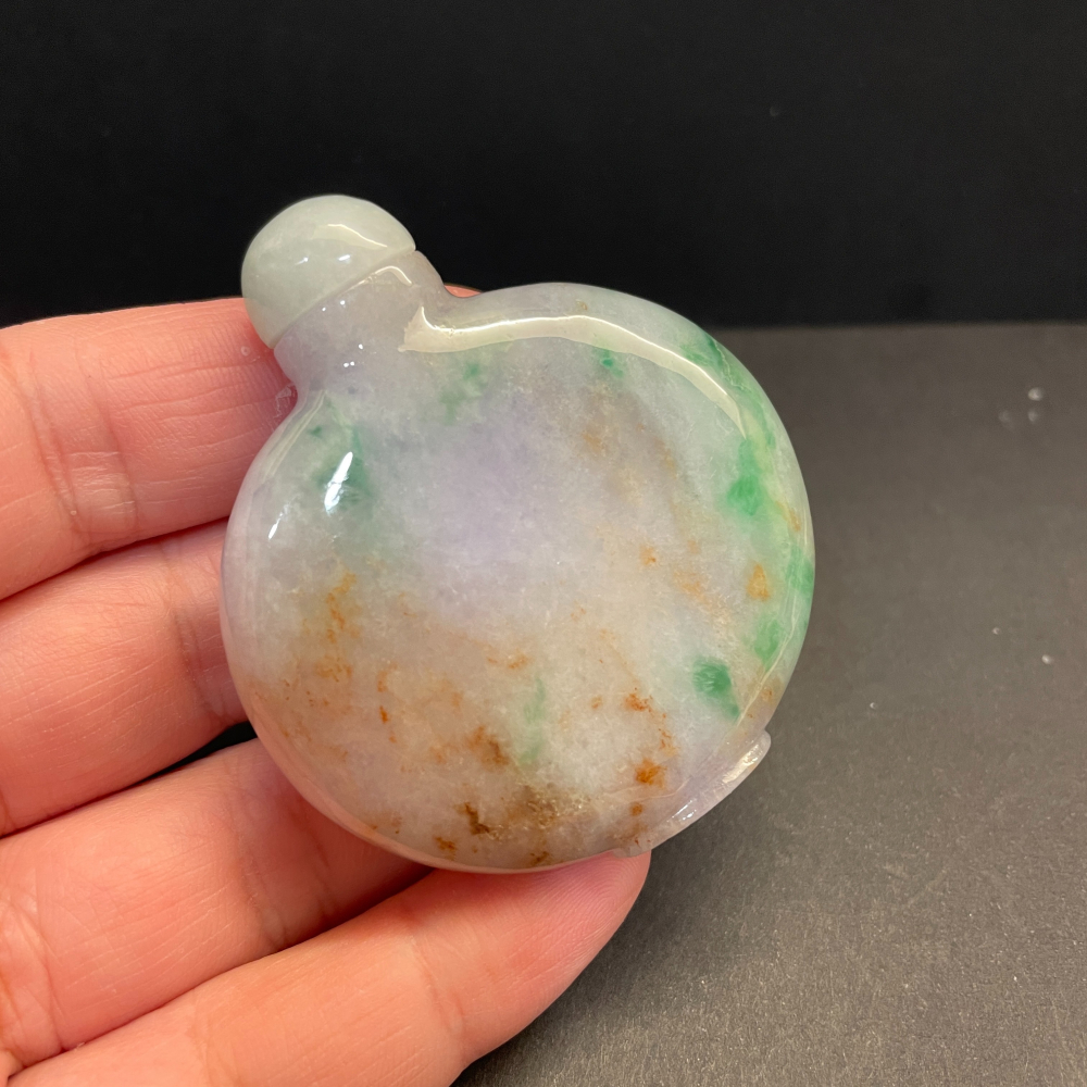 瀚玉珠寶 天然緬甸玉 三彩翡翠鼻煙壺 紫綠紅三色 緬甸玉鼻煙壺 福祿壽 螺旋紋 可開蓋