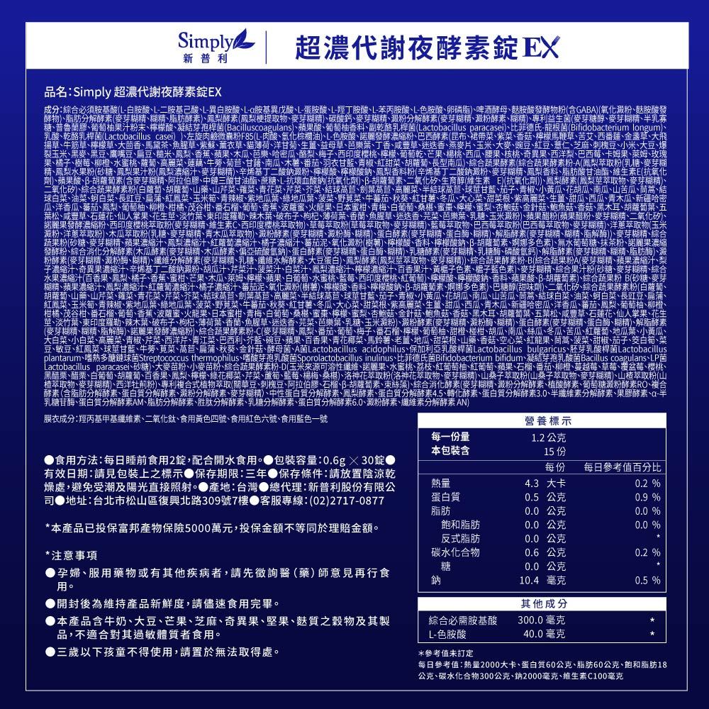 品名:Simply新普利 超濃代謝夜酵素錠EX(30顆/盒)