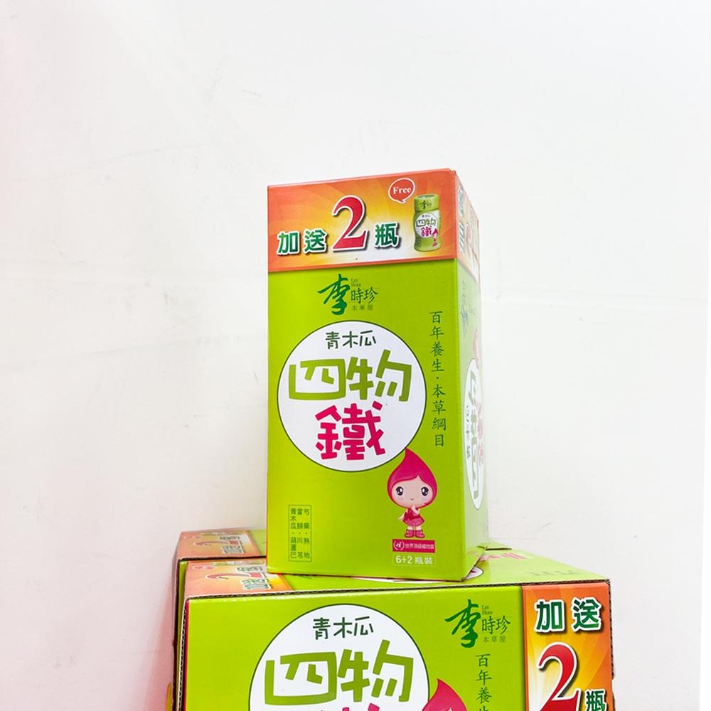 https://s-cf-tw.shopeesz.com/file/tw-11134208-7qul3-lkg5nzjyhl4o02 https://s-cf-tw.shopeesz.com/file/tw-11134208-7qul0-lkg5nzjy4xhy8c https://s-cf-tw.shopeesz.com/file/tw-11134208-7qul0-lkg5nzjy6c2eef https://s-cf-tw.shopeesz.com/file/tw-11134208-7qul8-lkg5nzjy7qmubc https://s-cf-tw.shopeesz.com/file/tw-11134208-7qul0-lkg5nzjyakag85 https://s-cf-tw.shopeesz.com/file/tw-11134208-7quky-lkg5nzjy95q07b 商品名稱: 李時珍青木瓜四物鐵 商品組合/規格:8瓶x1盒 內容量:50ml/瓶 原產地: 台灣 有效期限:2024.03.10 內容物成分: 加味四物萃取液(含當歸、川芎、芍藥、熟地、桂圓、紅棗、枸杞)青木瓜汁、甘胺酸亞鐵、葫蘆巴抽出物、環狀糊精、紅茶粉、檸檬酸、蘋果酸、檸檬酸鈉、赤藻糖醇(甜味劑)。 食品添加物: 赤藻糖醇(甜味劑)、牛磺酸、玉米糖膠、菸鹼醯胺、肌醇、維生素B12(含檸檬酸鈉、檸檬酸)、維生素B1、維生素B6 營養標示: 詳見外包裝 保存方式:置於陰涼乾燥處,避免受潮及陽光直射 食用方式:每日1瓶 投保責任險:泰安產險07-0622D000284 食品業登錄號: A-170555349-00000-6 廠商名稱:中天生物科技股份有限公司 廠商電話號碼:0800777708 廠商地址:桃園縣龍潭鄉高楊北路81號