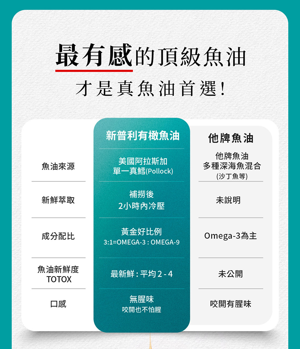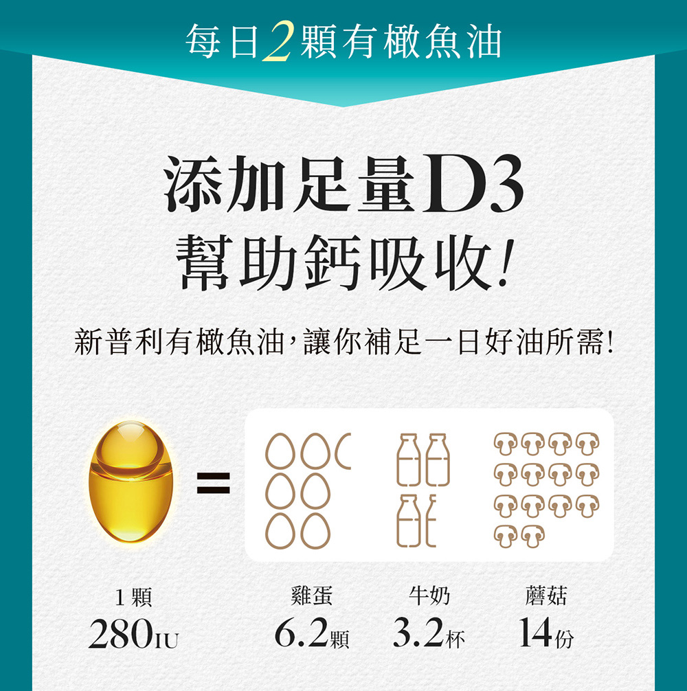 內容物成分(如含有豬、牛成分請加註國別):魚油(魚油、混合濃縮生育醇(抗氧化劑))、特級冷壓初榨橄欖油、混合濃縮生育醇(抗氧化劑)、維生素D3 2.5%(中鏈三酸甘油酯、膽鈣化醇、生育醇(維生素E,抗氧化劑)