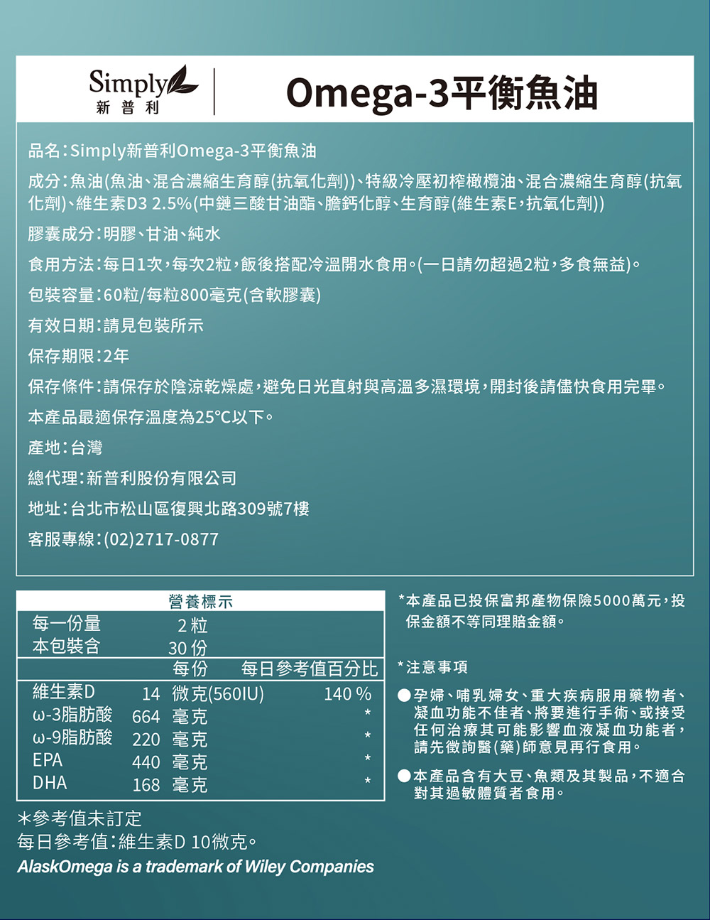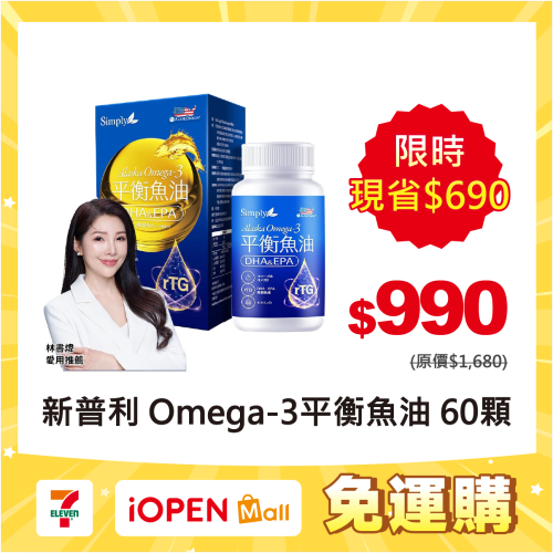 商品品名:【Simply新普利】Omega-3平衡魚油(60顆/罐)