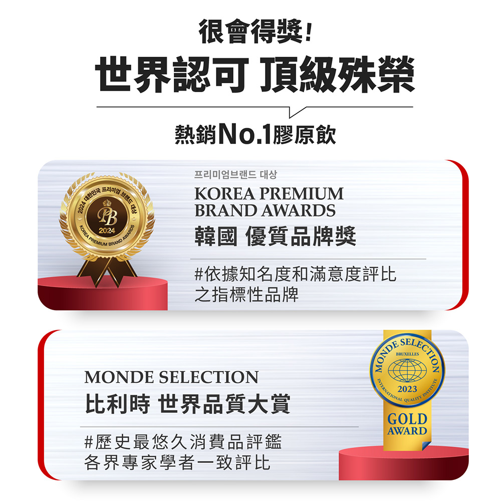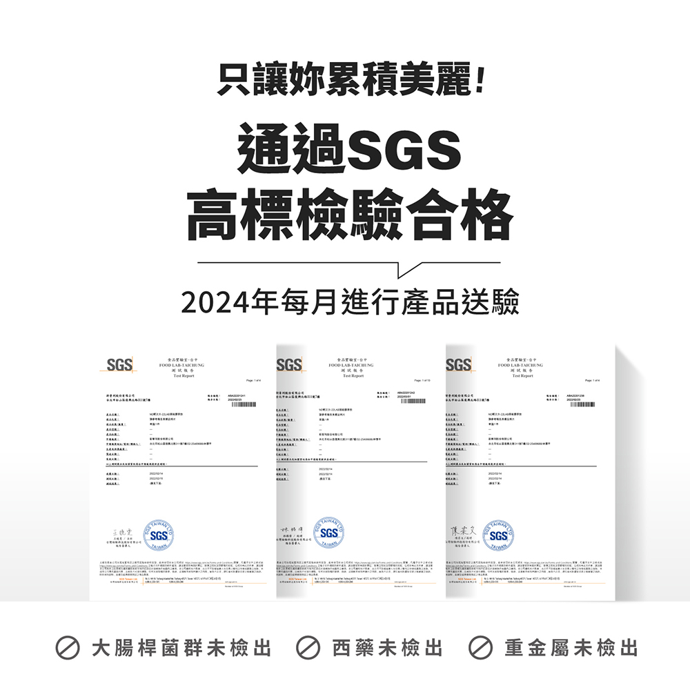 水光飲成份:水、魚膠原蛋白、蜜桃濃縮汁、蘋果濃縮汁、流行鏈球菌發酵物(含透明質酸鈉)、檸檬酸、 DL-蘋果酸、蠶絲蛋白(蠶絲蛋白、樹薯糊精)、葡萄萃取物(含白藜蘆醇)、維生素 C、蒟蒻粉、玄米萃取物(含神經醯胺)(玉米糊精、米抽出物)、石榴萃取物(石榴萃取物、麥 芽糊精)、番茄萃取物、酵母濃縮粉(含硅素)、鮭魚抽出物(麥芽糊精、鮭魚抽出物)
