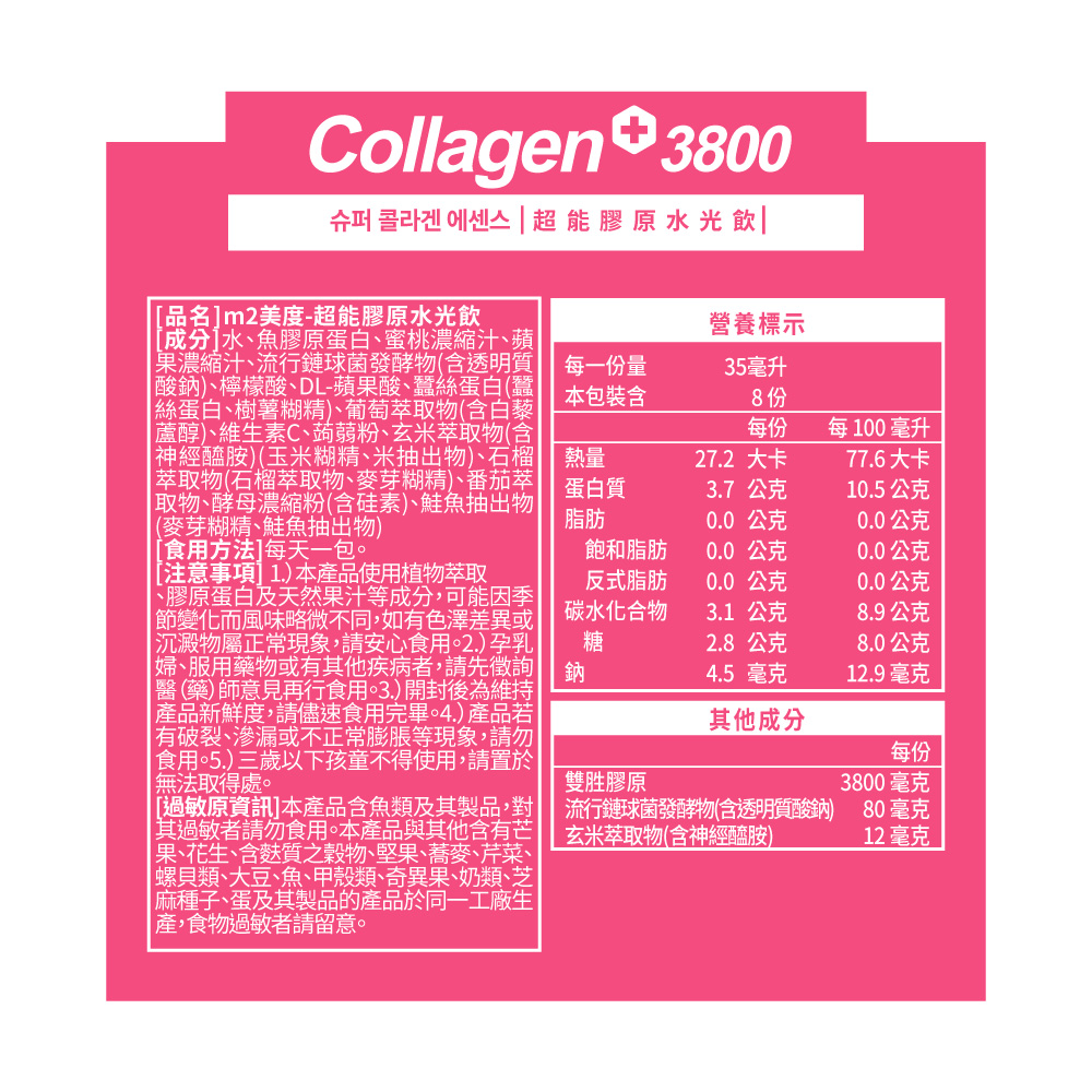 2.商品品名:m2美度-超能膠原水光飲(8入/盒)