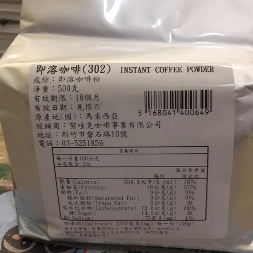 努哇克-即溶咖啡粉(302)500g(無奶精無糖的黑咖啡)經濟商業用包