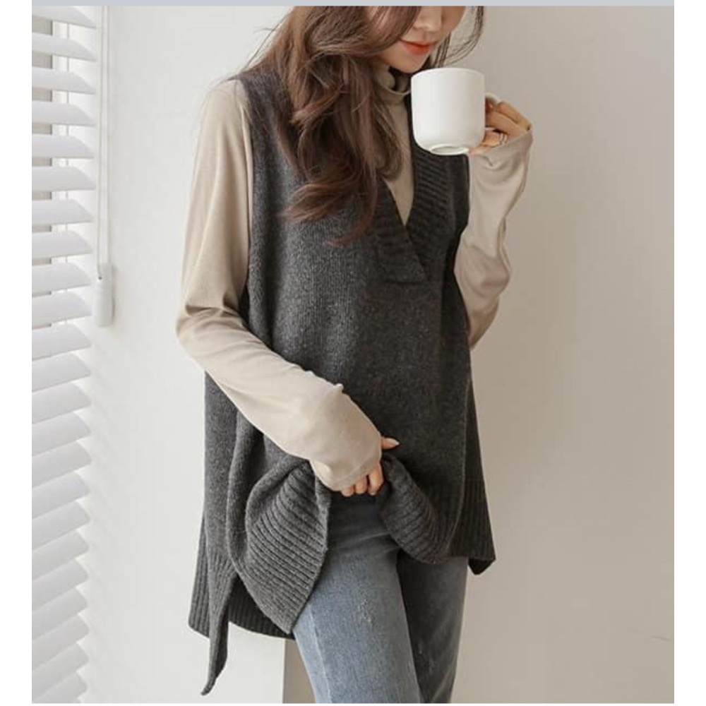 ✿韓國🇰🇷高低開衩襬寬鬆針織背心✿