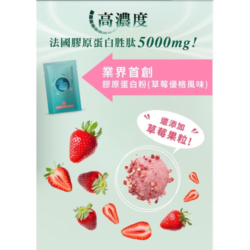 採用優質魚來源,經酵素水解為膠原蛋白胜肽,低分子量(<2000)道爾頓, 可利用率高,高純度,無色,無腥臭味,完全水溶,吸收力佳,且口感細緻。 一天一包,以下為一包的劑量: Naticol法國專利魚膠原蛋白 5000 mg Hyabest日本專利流行鏈球菌發酵物 40 mg Nexira法國西印度櫻桃萃取物 250 mg SCP Complex-LS日本專利鮭魚鼻軟骨萃取物 5 mg Oryza日本專利草莓種子萃取物 20 mg 日本稻米萃取物 5 mg COLLACTIVE法國彈力蛋白 100 mg 外盒尺寸:12.3高x25.5寬x7.3深cm