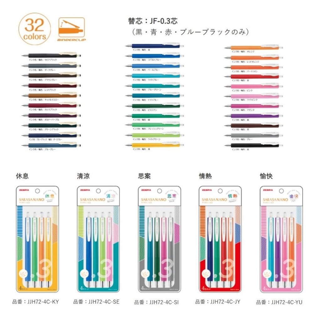 註:除 黑(BK)、藍(BL)、紅(R)、藍黑色(VDB) 四種顏色可另購 JF-0.3 對應顏色筆芯替換外,其他顏色沒有出對應筆芯。