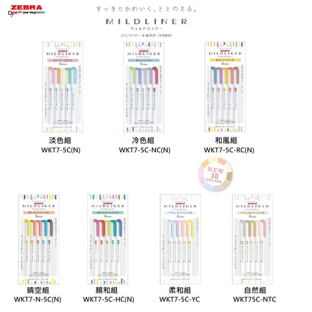 ●日本進口斑馬 ZEBRA MILDLINER WKT7 雙頭螢光筆5色組