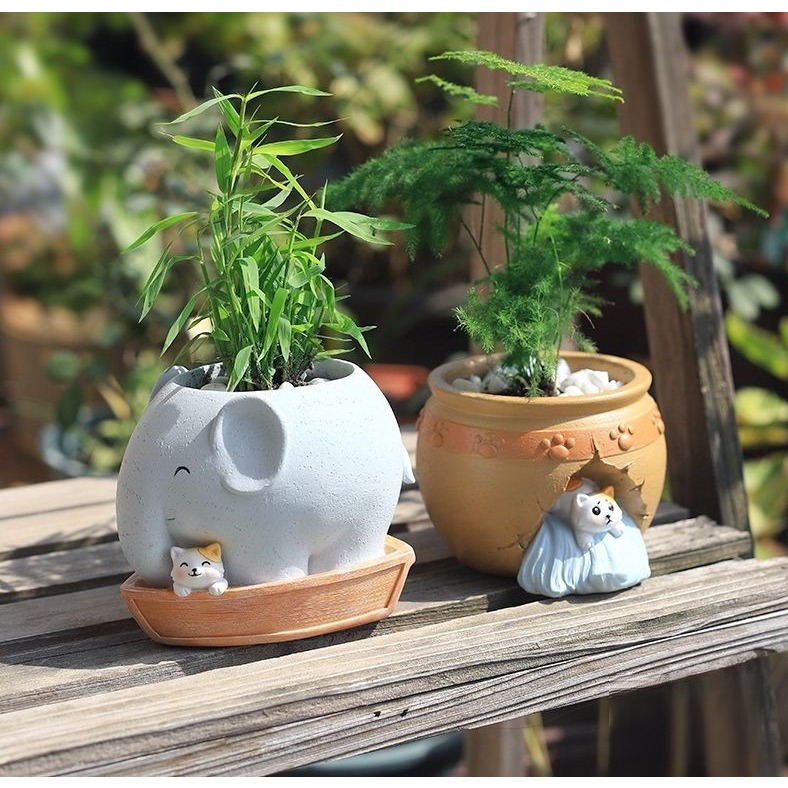 【微景小舖】創意造型多肉花盆 小象花盆 喵星人多肉花盆 多肉植物盆栽 多肉盆栽 花器 花盆架 水泥花盆 造型花盆 微景觀