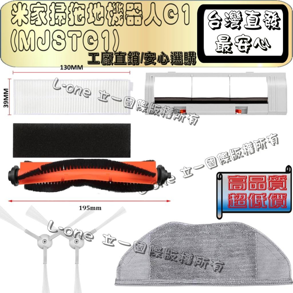B.商品規格 款式 : 米家掃拖機器人G1(MJSTG1)專用耗材-副廠 材質 : PP/ABS/高質透氣紙/棉布/壓克力/不織布 G1 專用主刷 G1 專用無框濾網,附贈海綿 G1 專用帶框濾網 G1 專用邊刷 (有分左右喔) G1 專用拖布