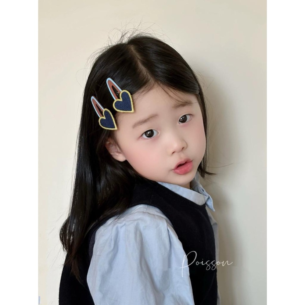 Poisson_korea韓國兒童髮飾 愛心刺繡可愛瀏海夾 髮夾組 女童髮飾