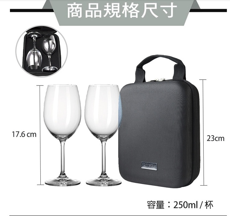 品名:仙德曼-玻璃紅酒杯旅組-附專屬收納套250ml/8oz(型號:CW705)