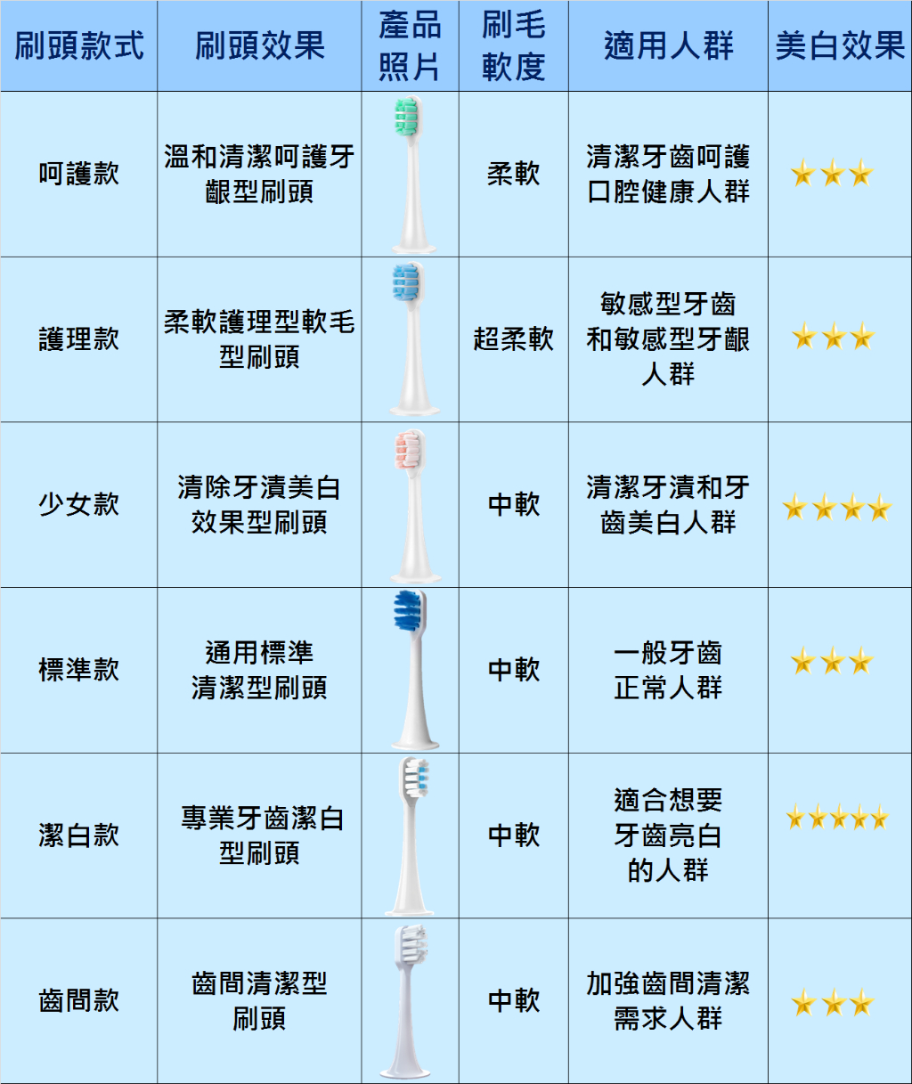 ⭐️ 潔白款: 專業牙齒潔白型刷頭(適中刷毛)
