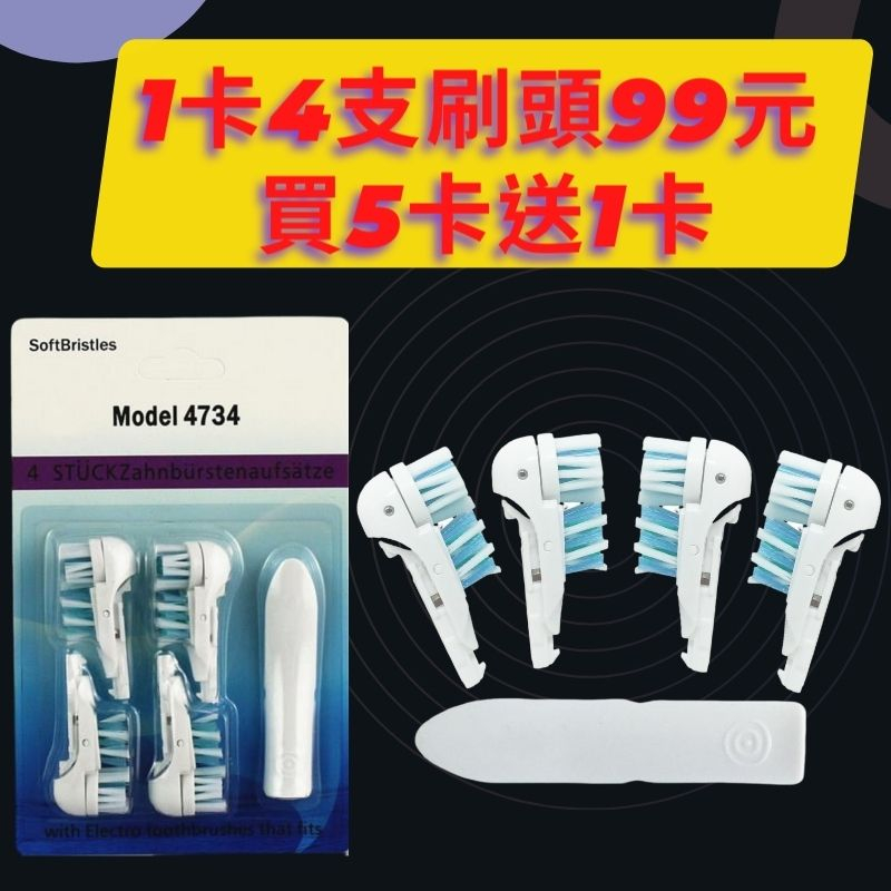 歐樂B多動向B1010 B1 Flash CAP2 副廠刷頭 3733 4732 4734替換刷頭 1卡4刷頭+拆卸扳手
