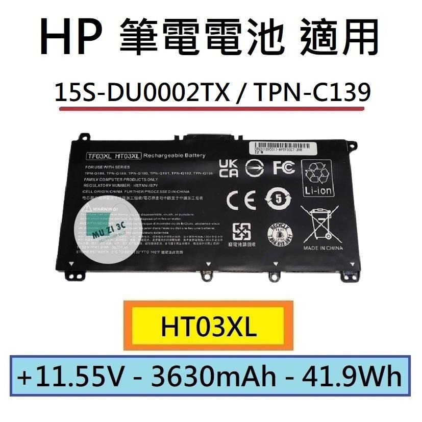 全新【HP】15S-DU0002TX / TPN-C139 15-DU 筆電電池 HT03XL TF03XL【木子3C】