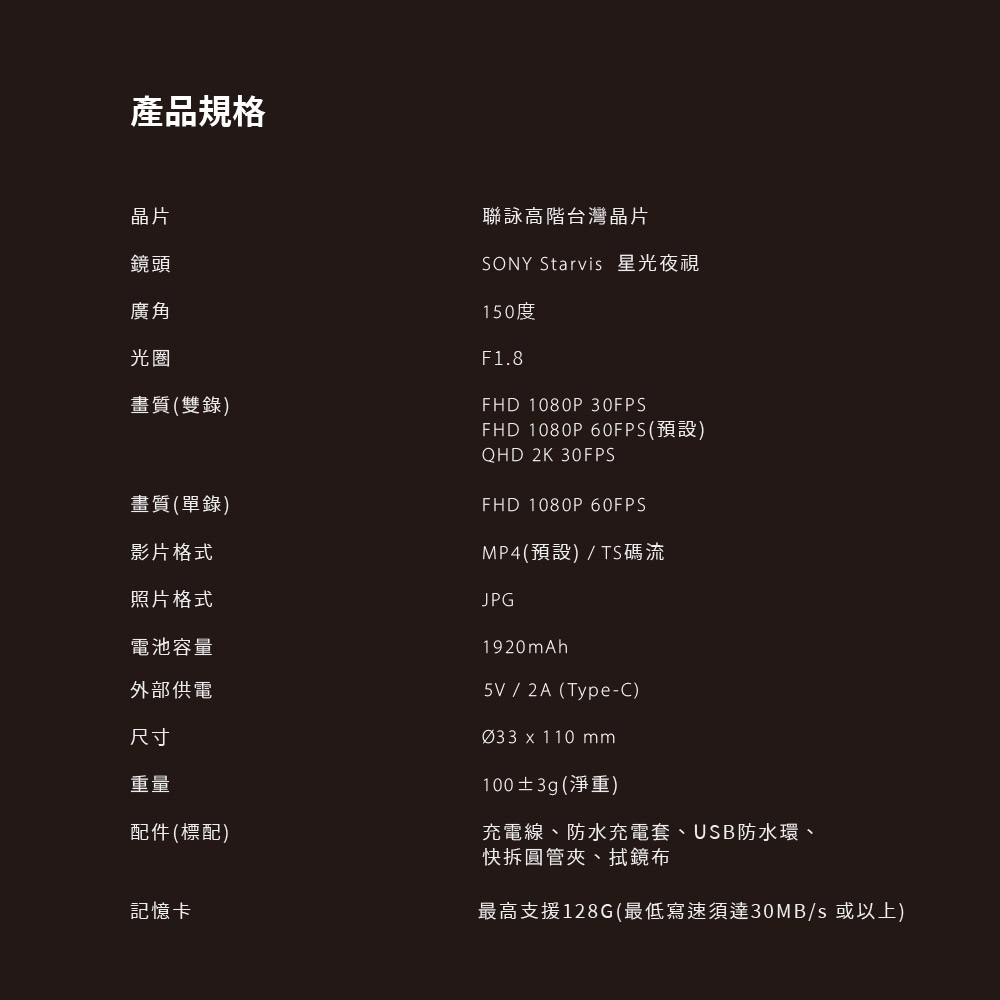 🔒8.解析度:1080P/30FPS、1080P/60FPS、2K/30FPS(可於APP中切換)