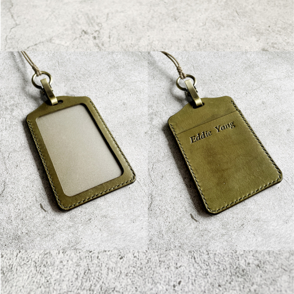 ⭐經典雙層證件套,由三片皮革縫製而成,正背面各一卡層,正面證件視窗格有霧面塑膠保護膜。