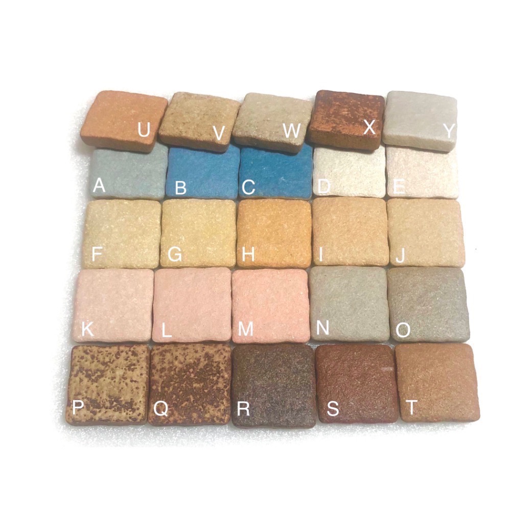 關於【蛋糕系列】:蛋糕系列與一般色的差別在於磚的底色,一般磚底色為灰色抑或灰白色(顯示在側面及底面),而蛋糕系列的底色為咖啡色,糖霜不一定有灑滿,可以接受再下單。白糖霜蛋糕-在咖啡色底磚頂面撒上『灰色』顏料窯烤而成(頂面灰色而側面式咖啡色);橘子糖霜蛋糕-在咖啡色底磚頂面撒上『橘黃色』顏料窯烤而成;金桔糖霜蛋糕-在咖啡色底磚頂面撒上『淺橘色』顏料窯烤而成。