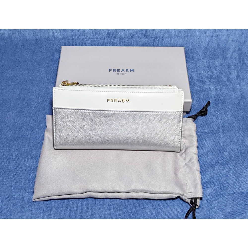 FREASM撞色十字紋輕薄雙拉長夾(銀色)