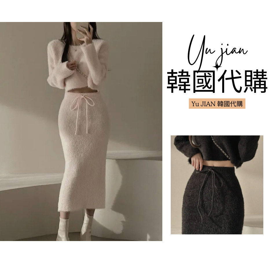 韓國連線🇰🇷正韓秋冬仿貂絨針織短版毛衣+高腰包臀半身裙兩件套