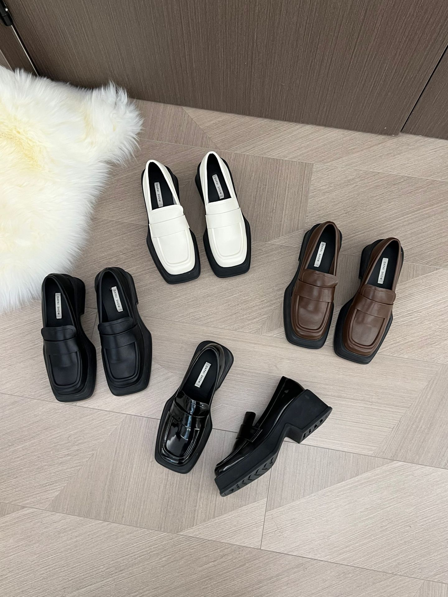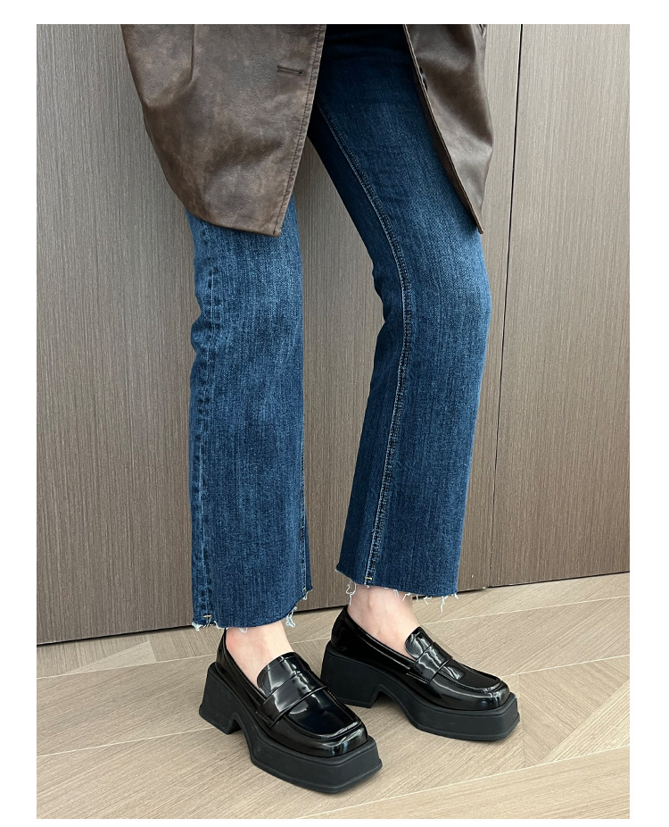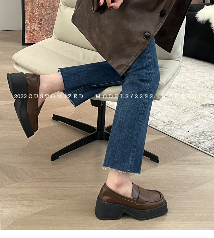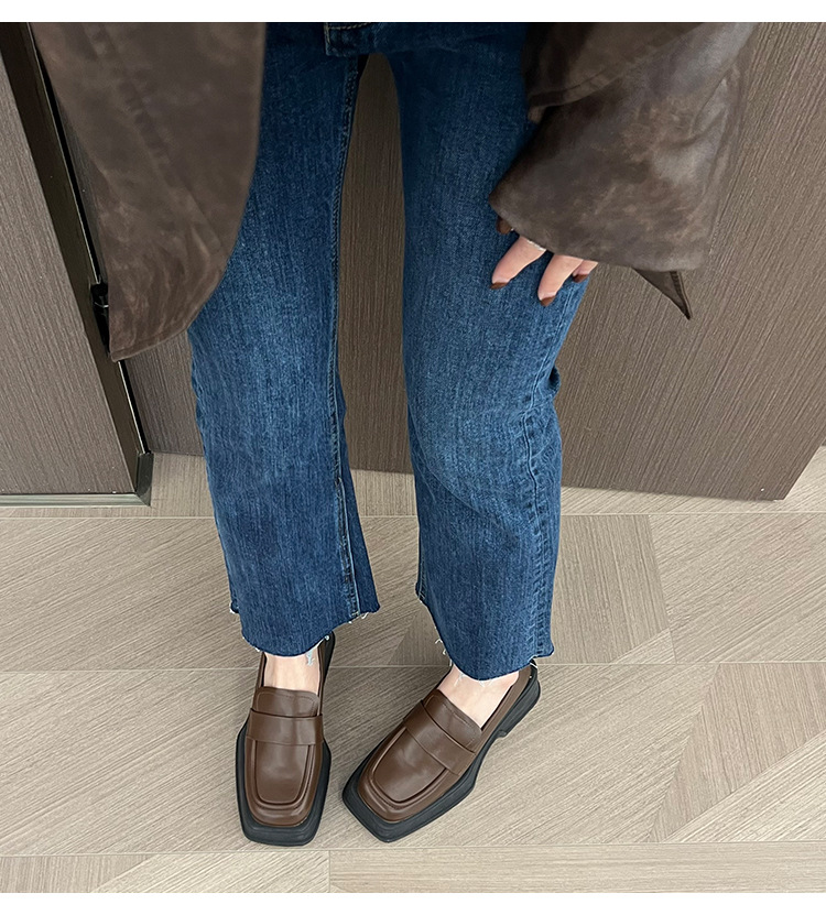 ✔英倫風復古厚底方頭小皮鞋