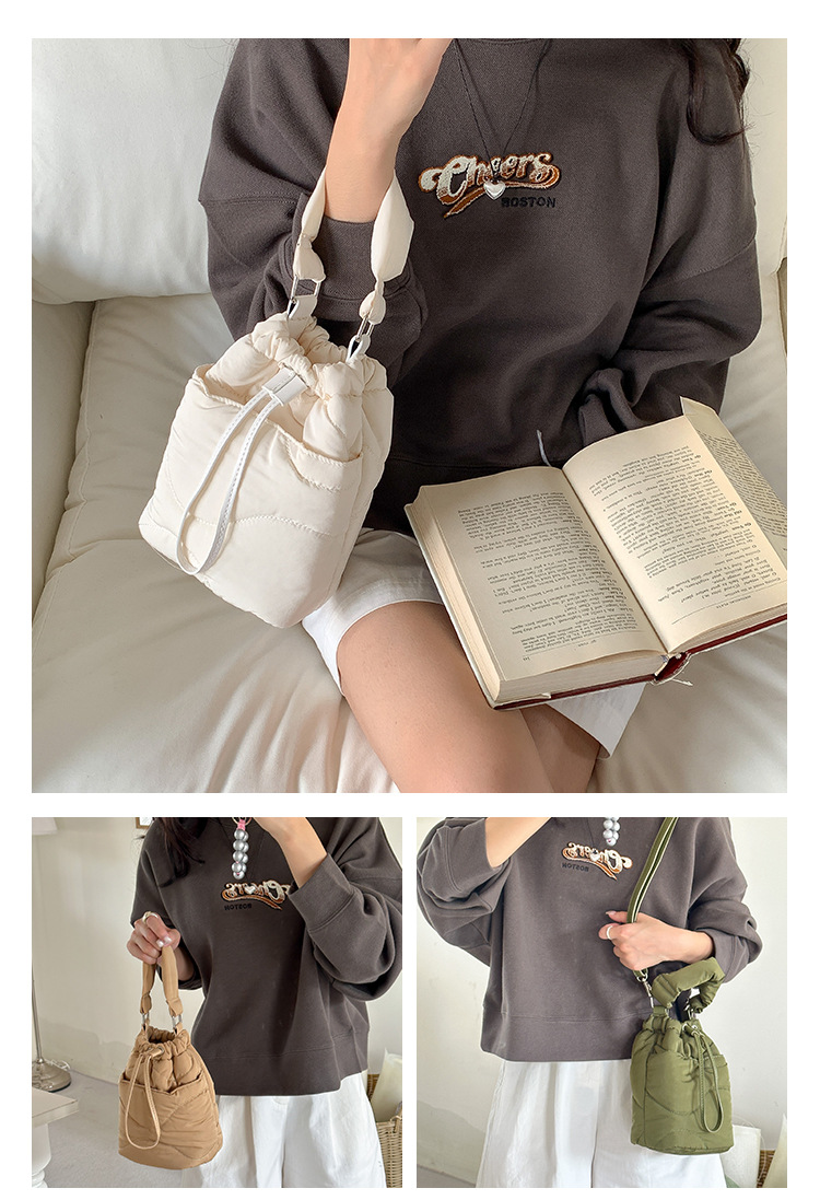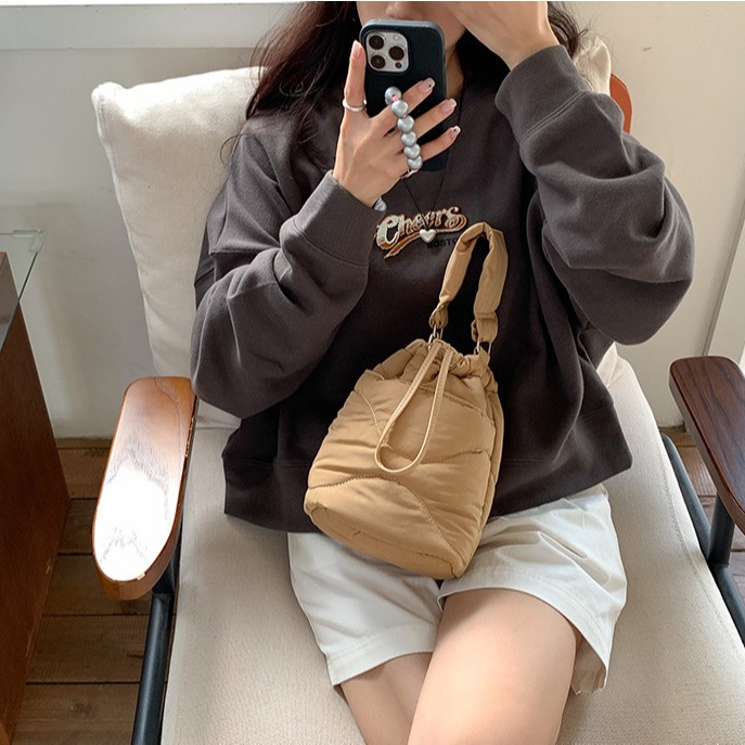 ✔手提刺繡羽絨棉服水桶包