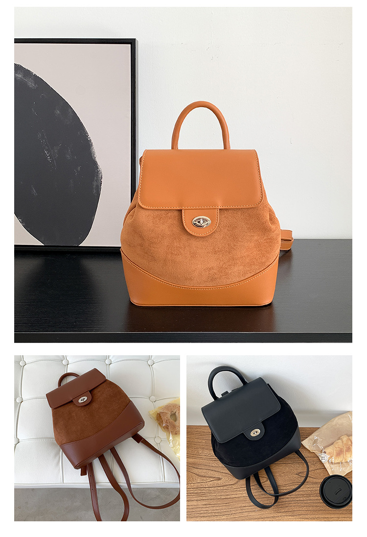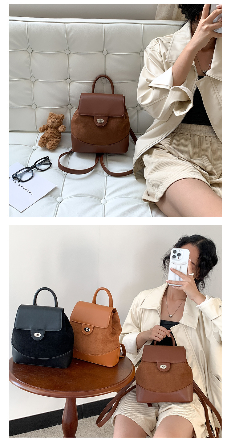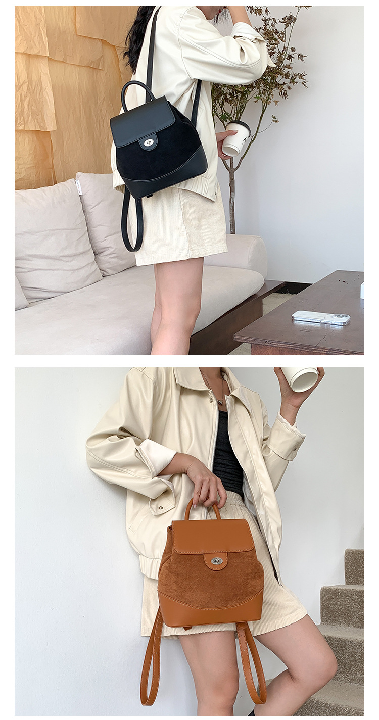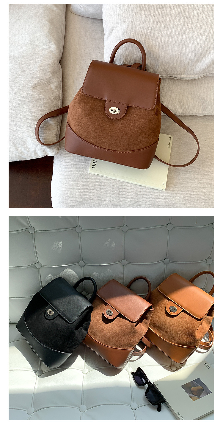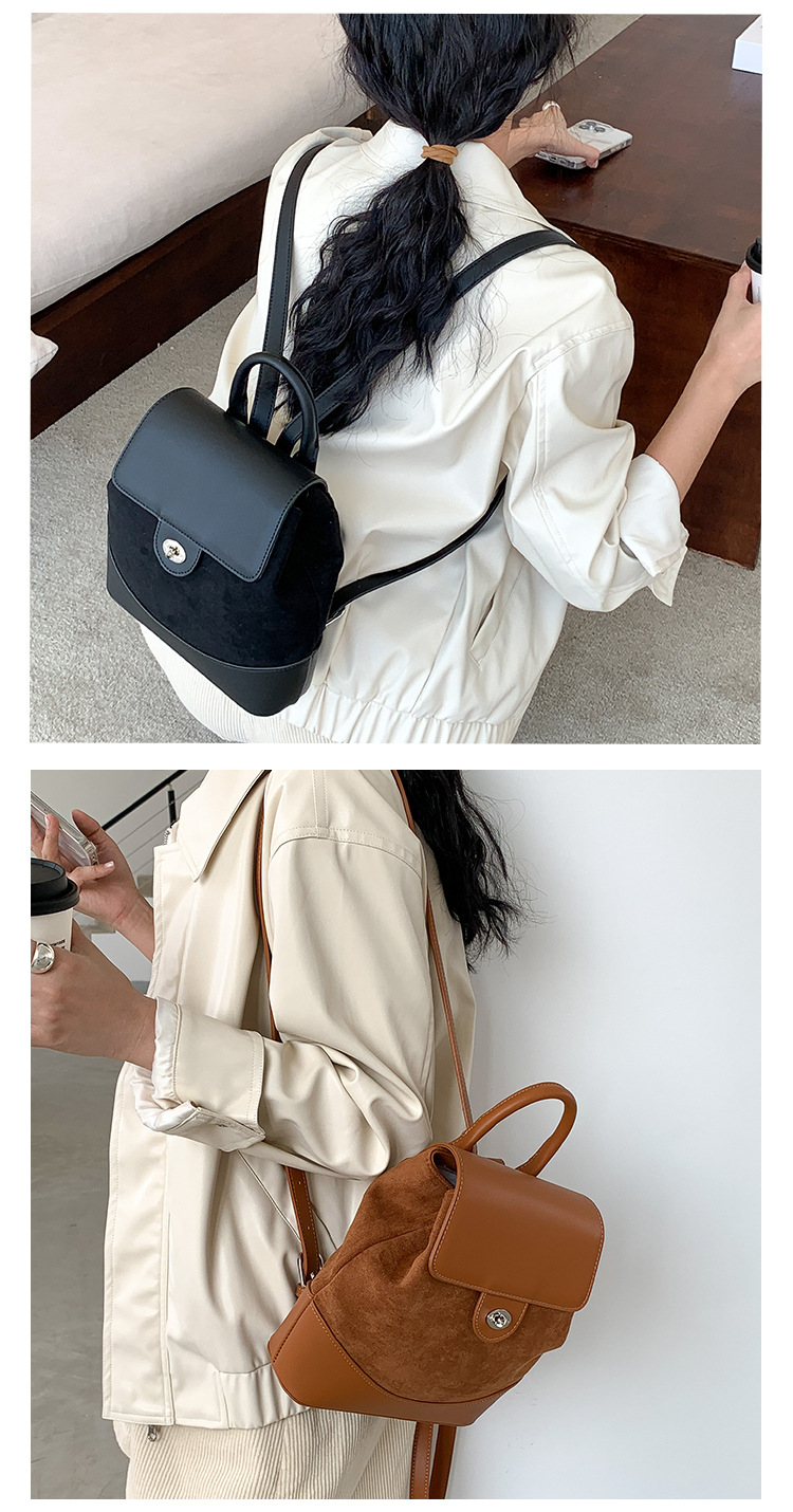 ✔時髦皮革拼接麂皮絨雙肩包