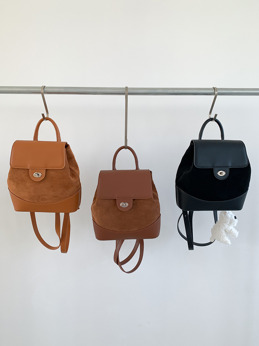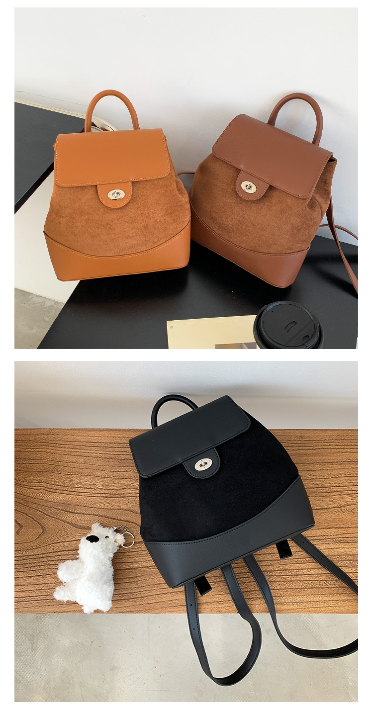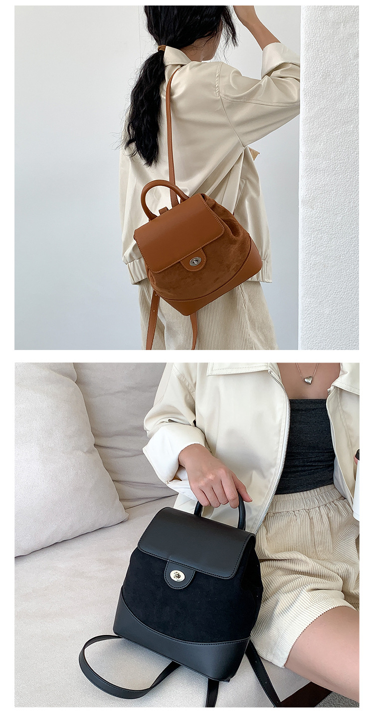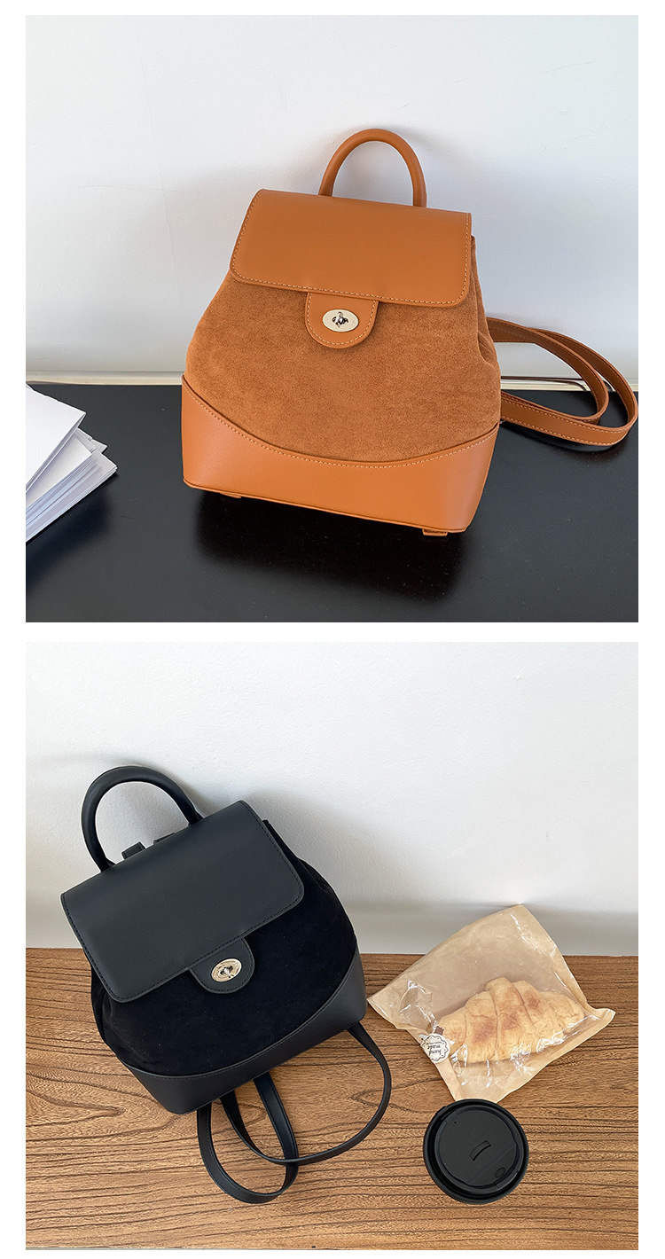 ✔時髦皮革拼接麂皮絨雙肩包