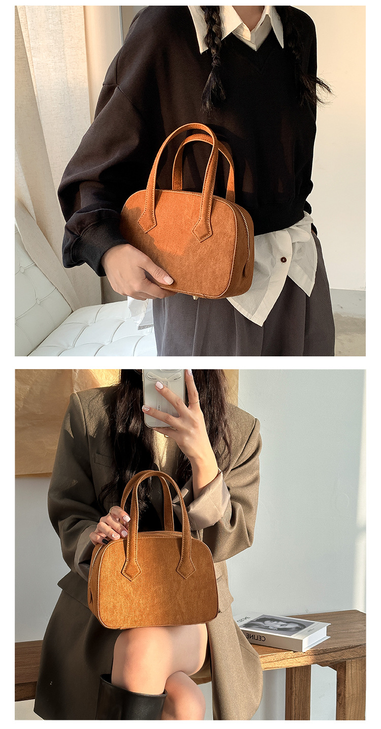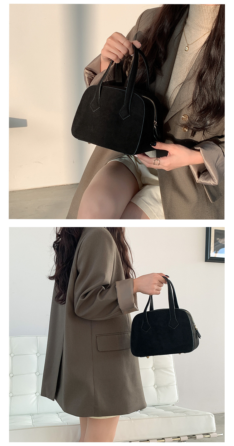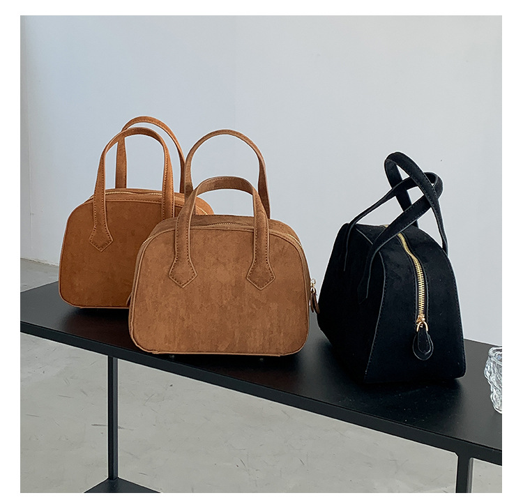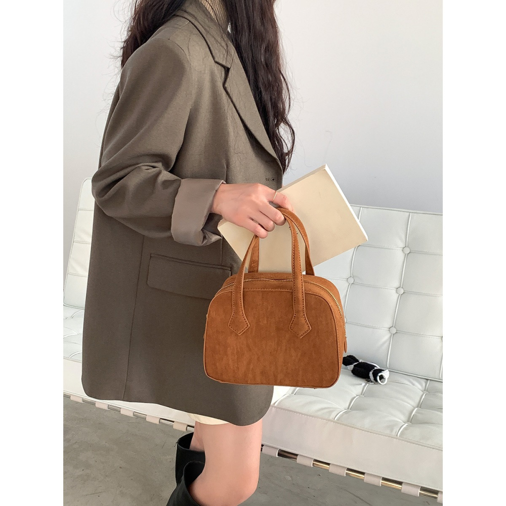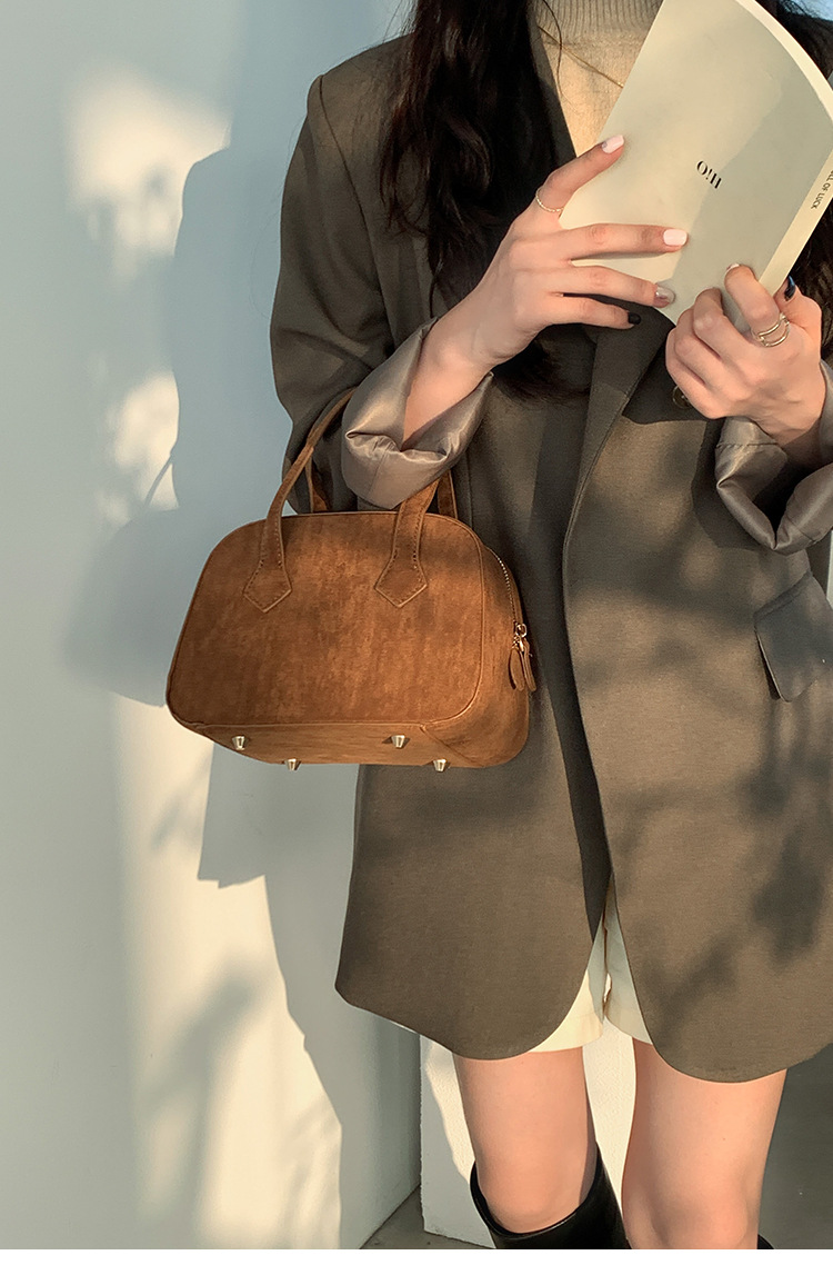 ✔輕復古挺版絨面波士頓手提包
