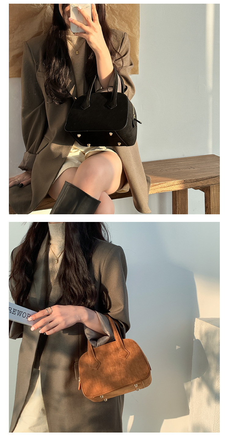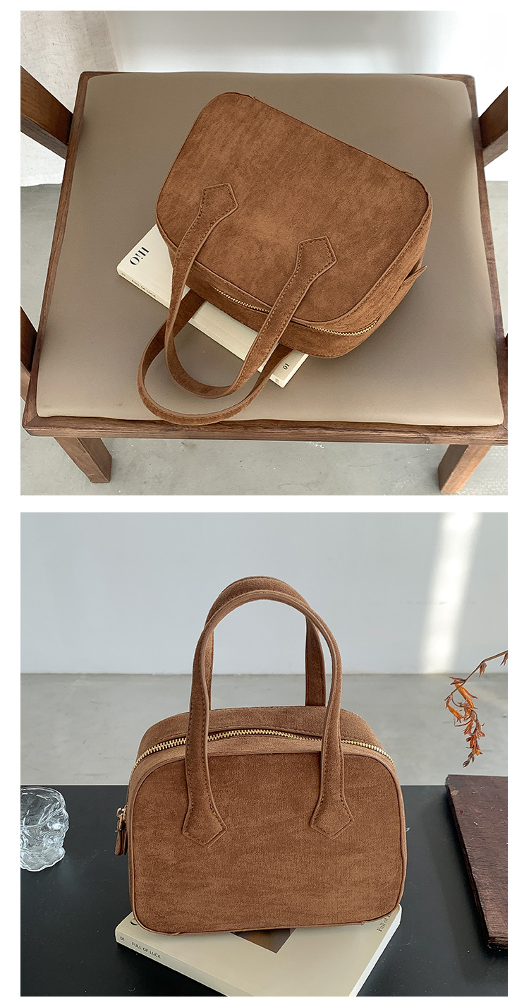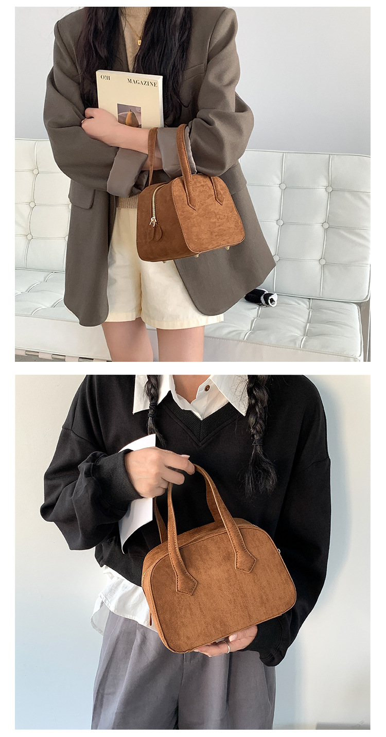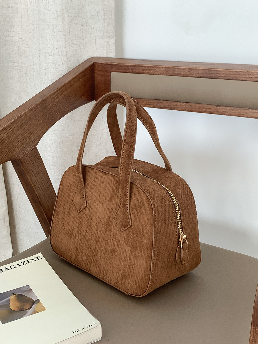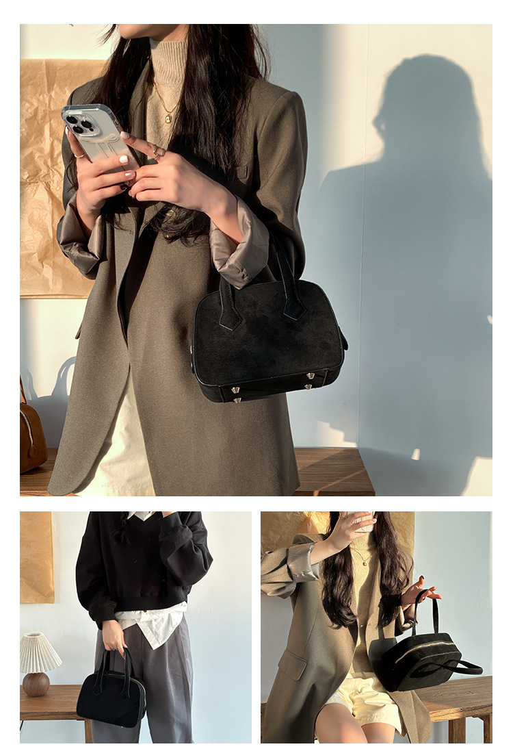 ✔輕復古挺版絨面波士頓手提包