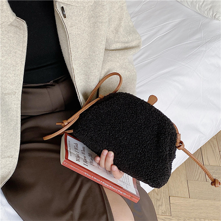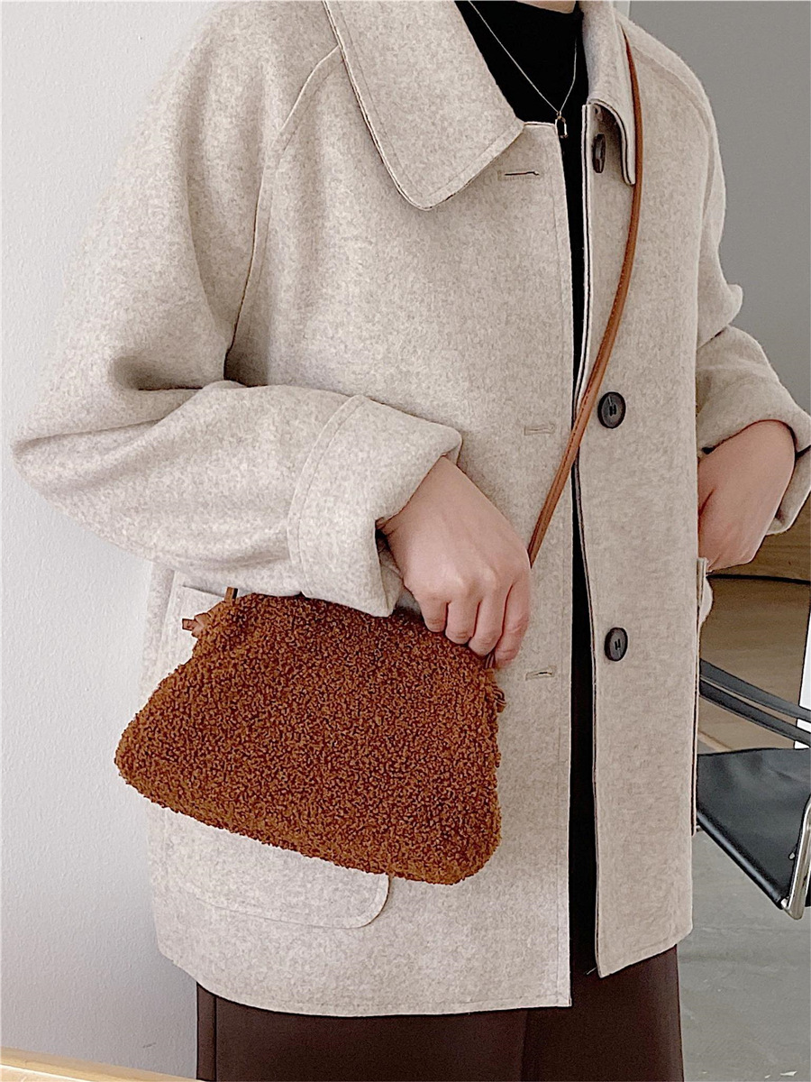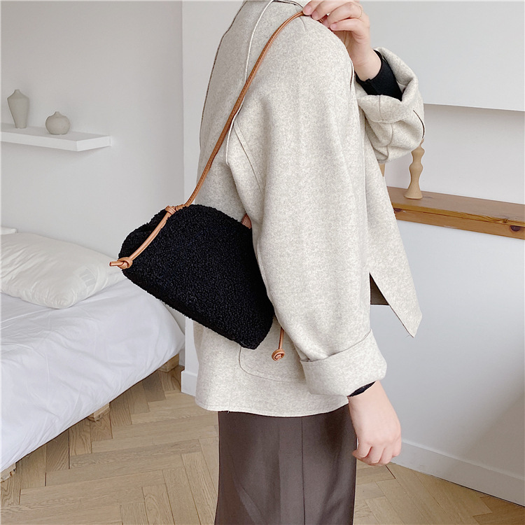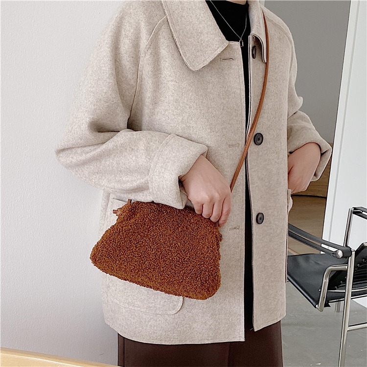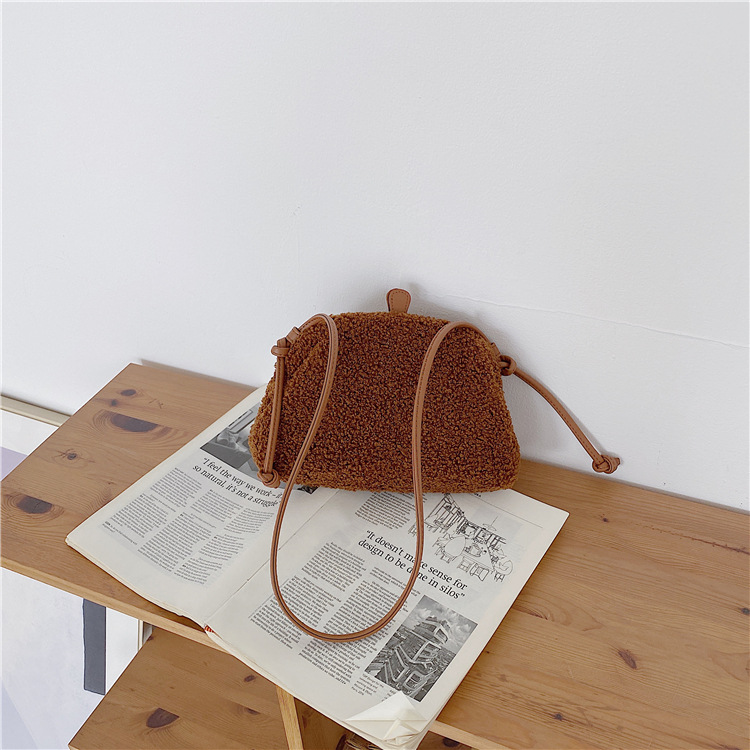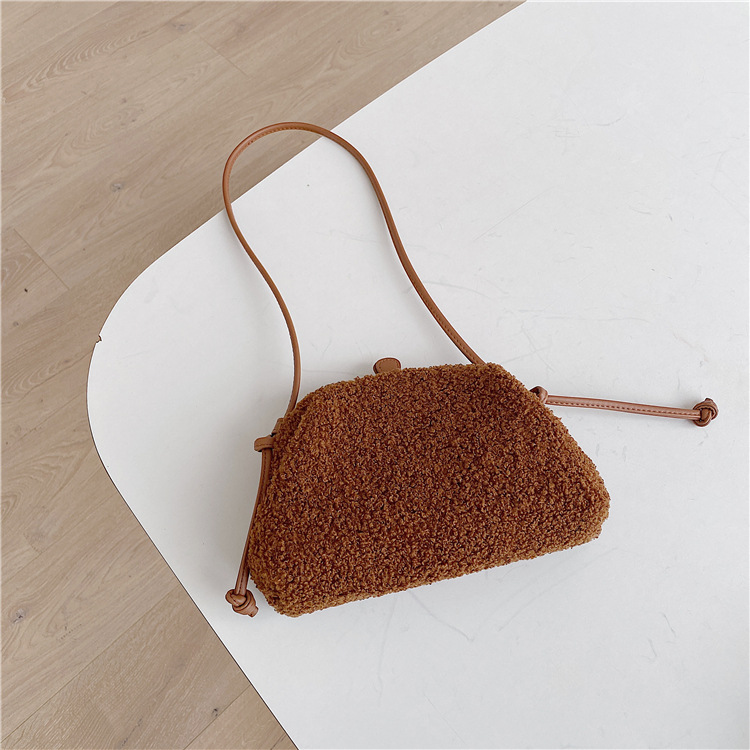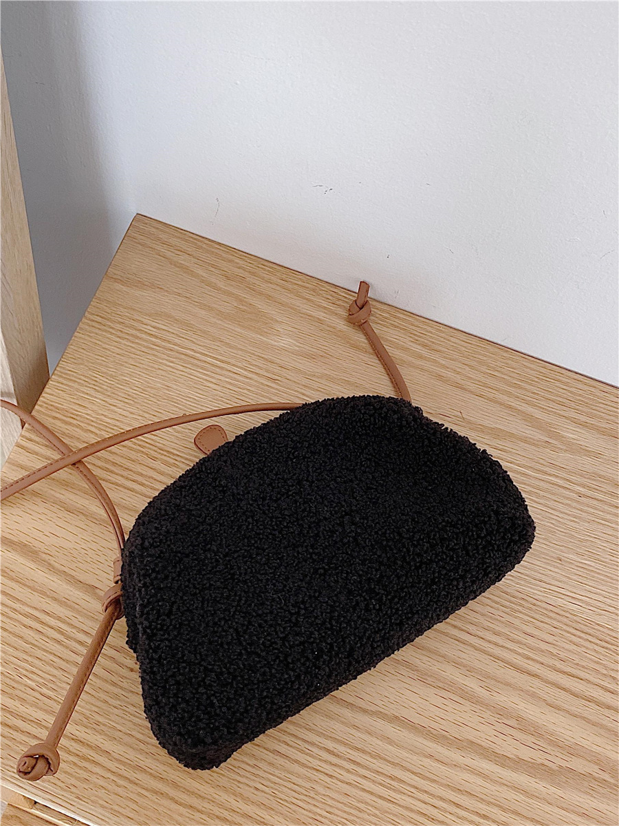 ✔泰迪絨半圓羊羔毛斜跨夾子包