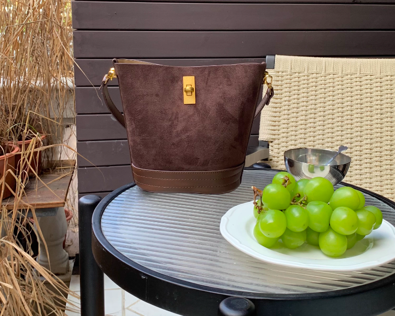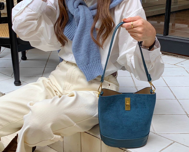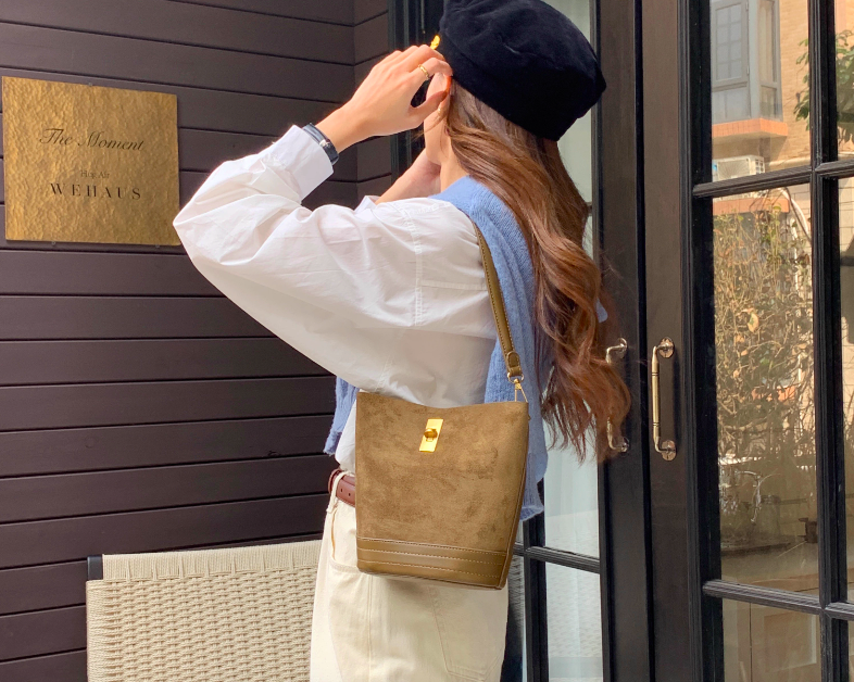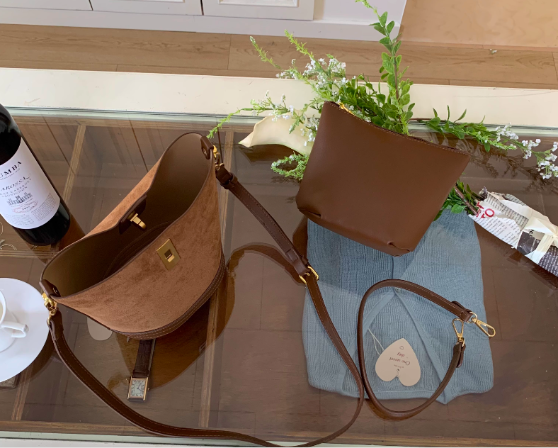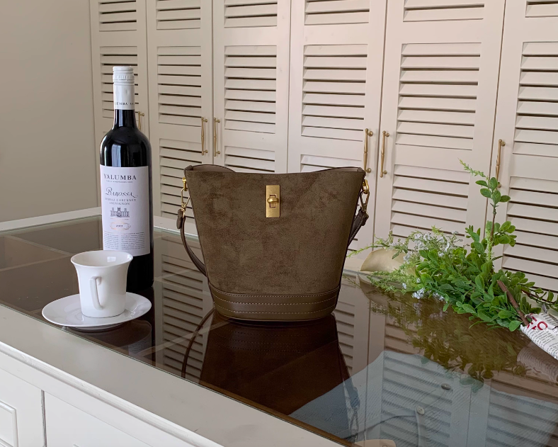 ✔終於找到爆炸好看的復古鹿皮絨托特水桶包