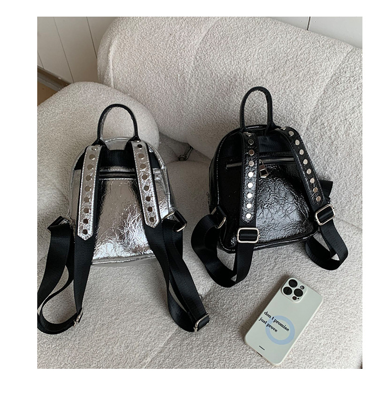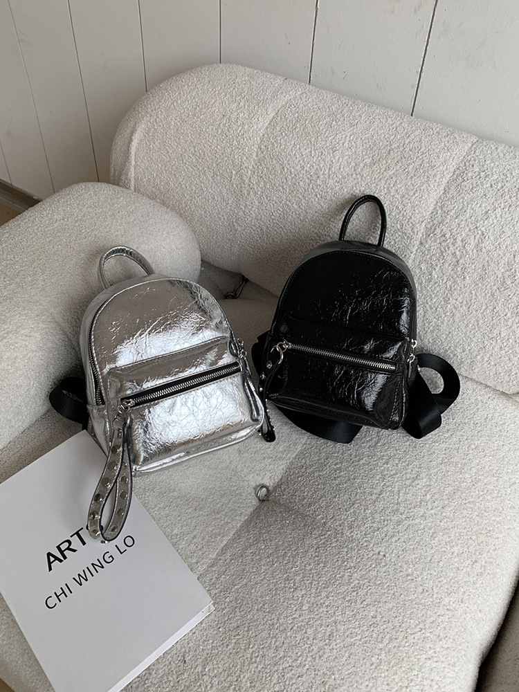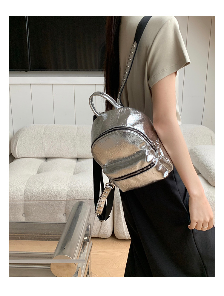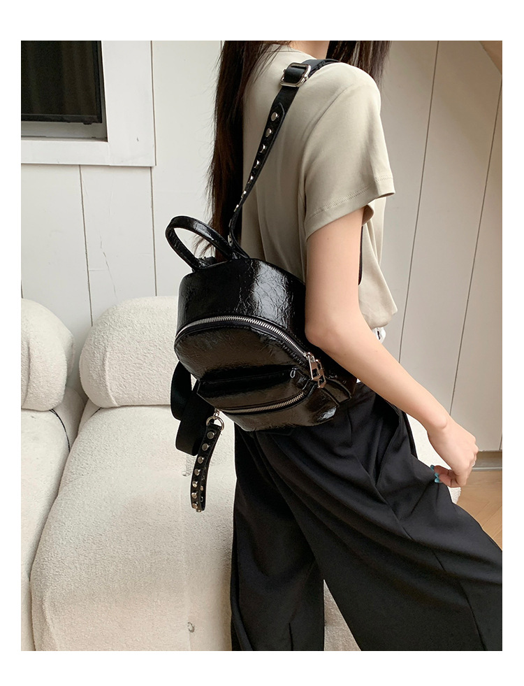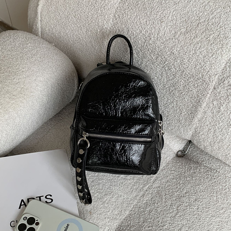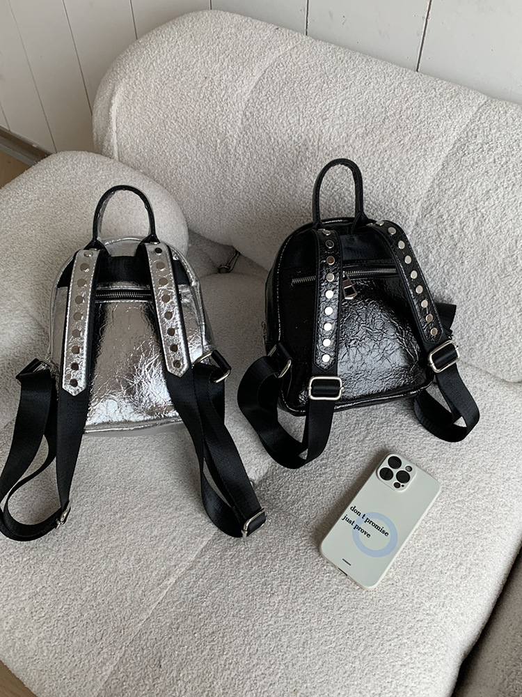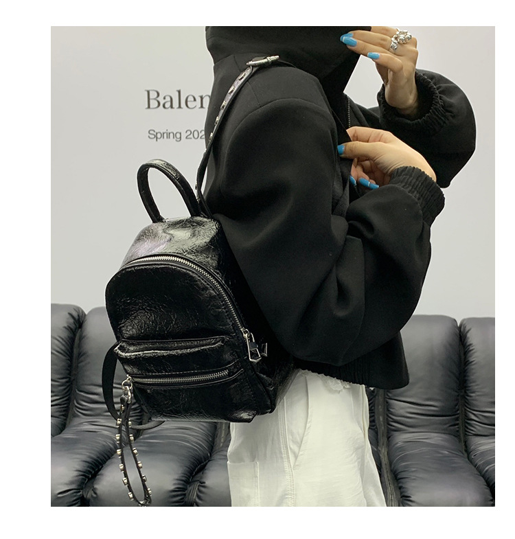 ✔韓國鉚釘時尚抓皺大容量雙肩包