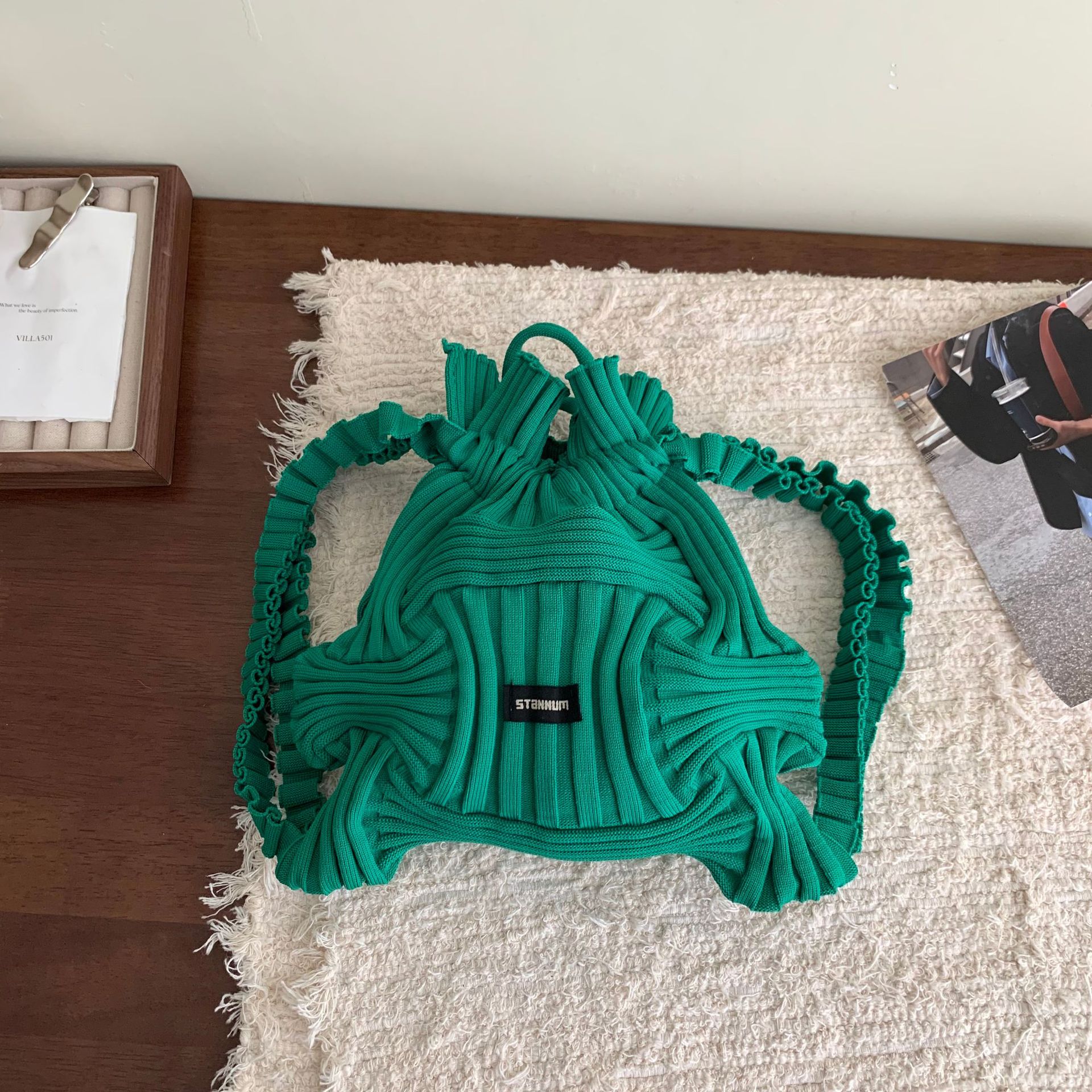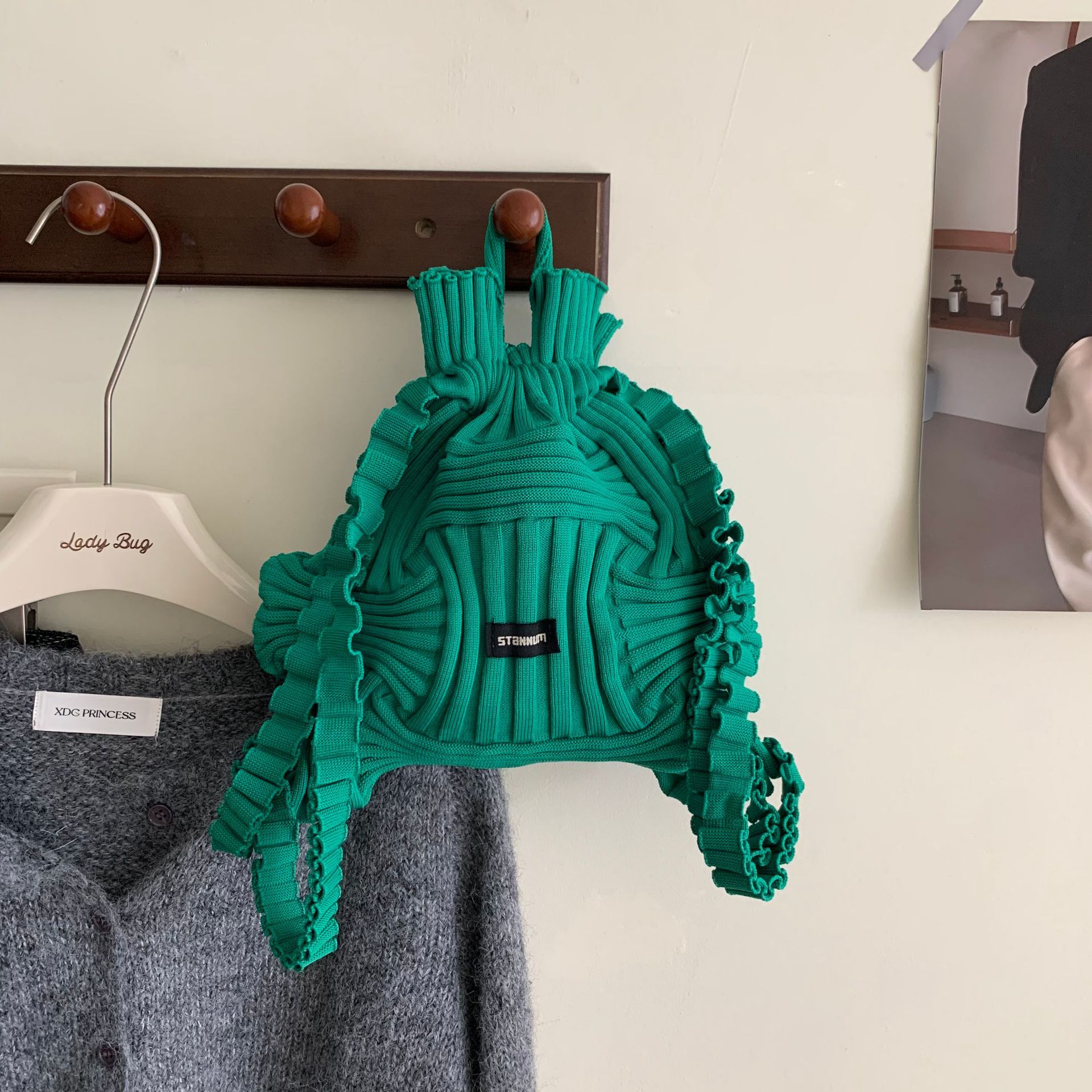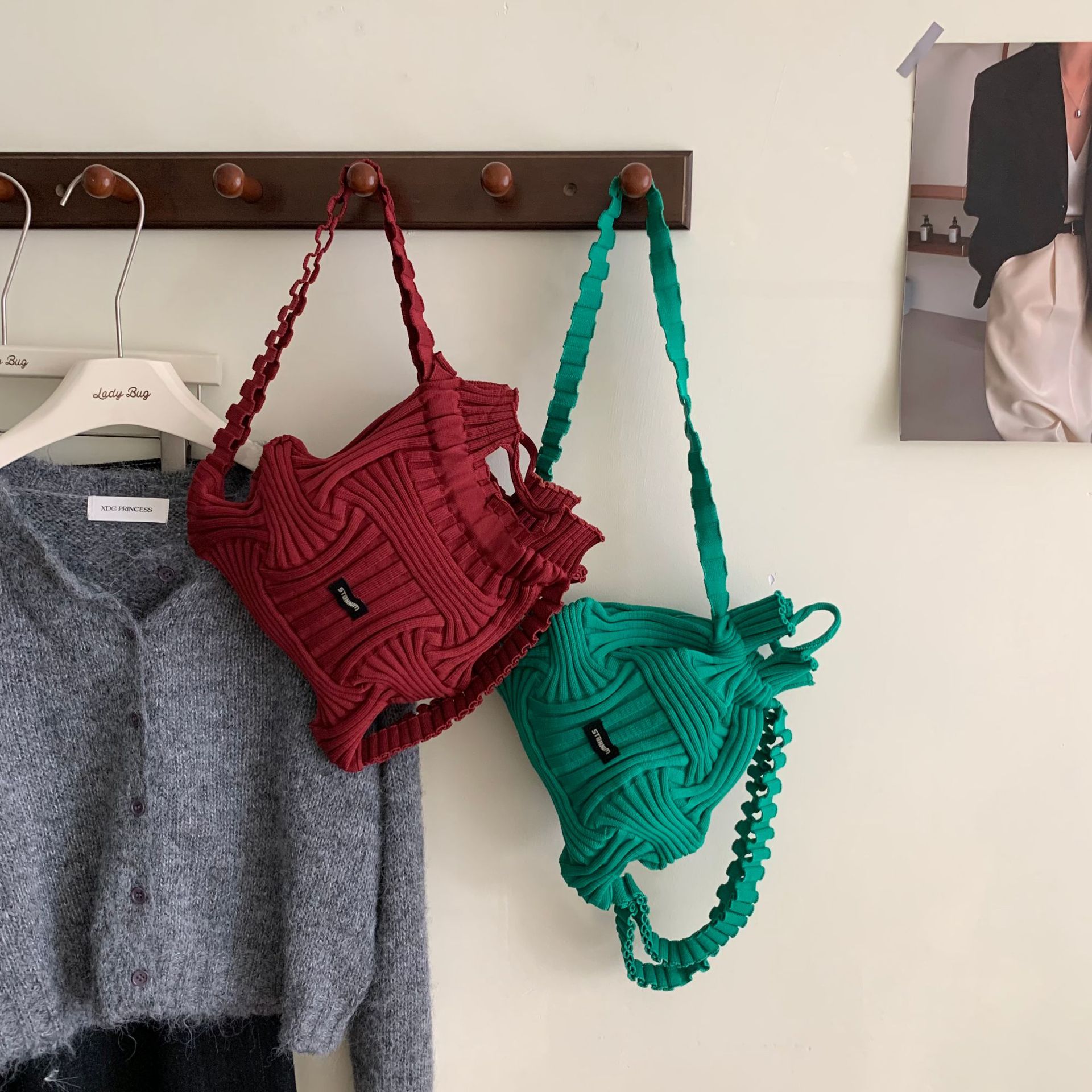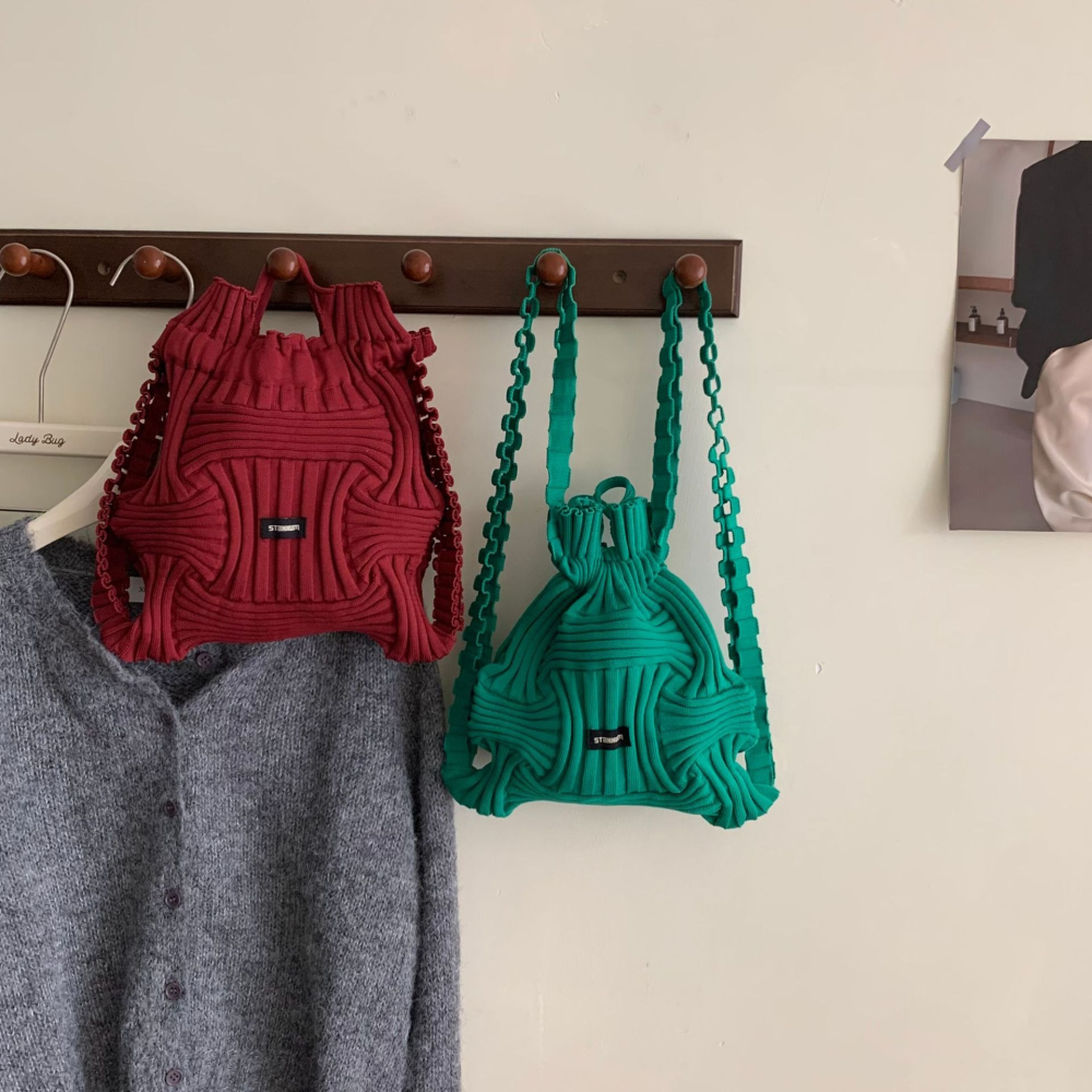 ✔設計師款多功能個性皺褶彈力手提雙肩包