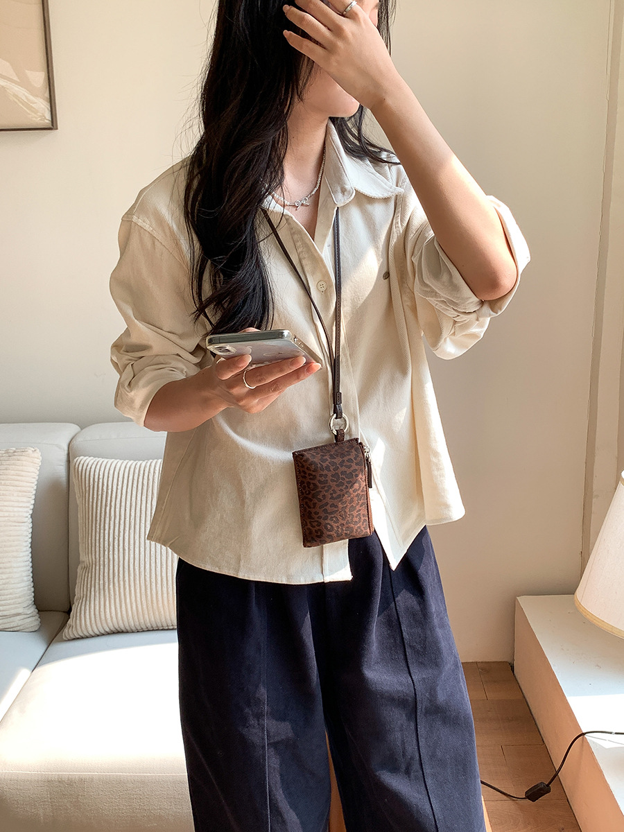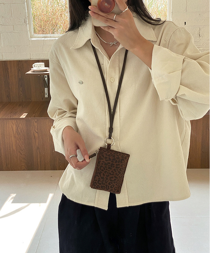 ✔韓國個性復古豹紋掛脖式零錢包