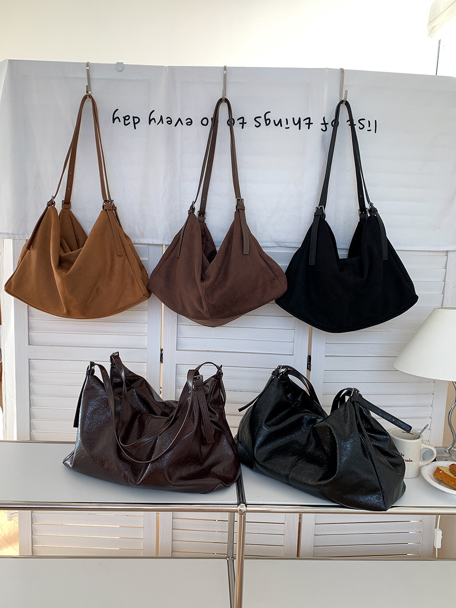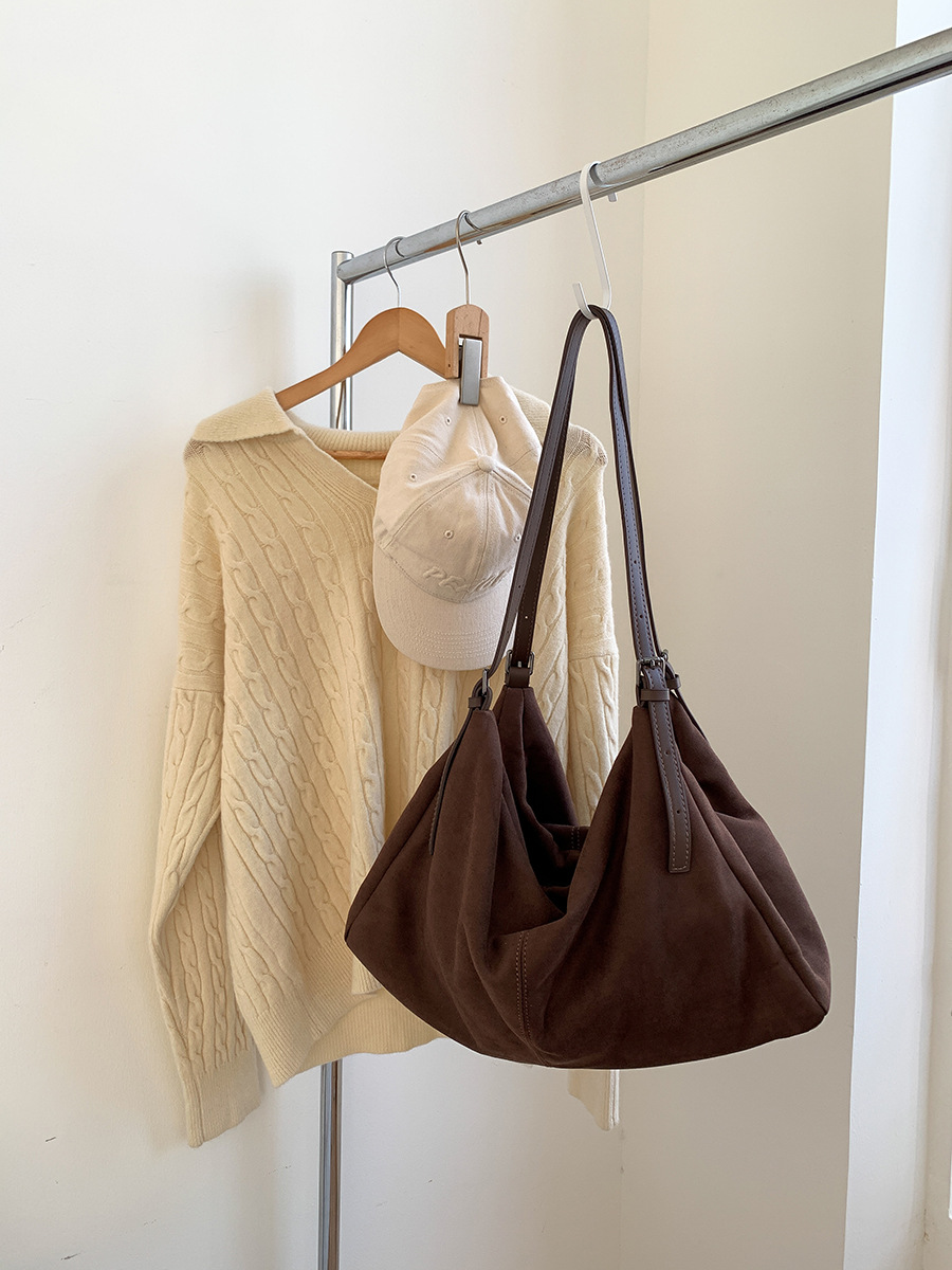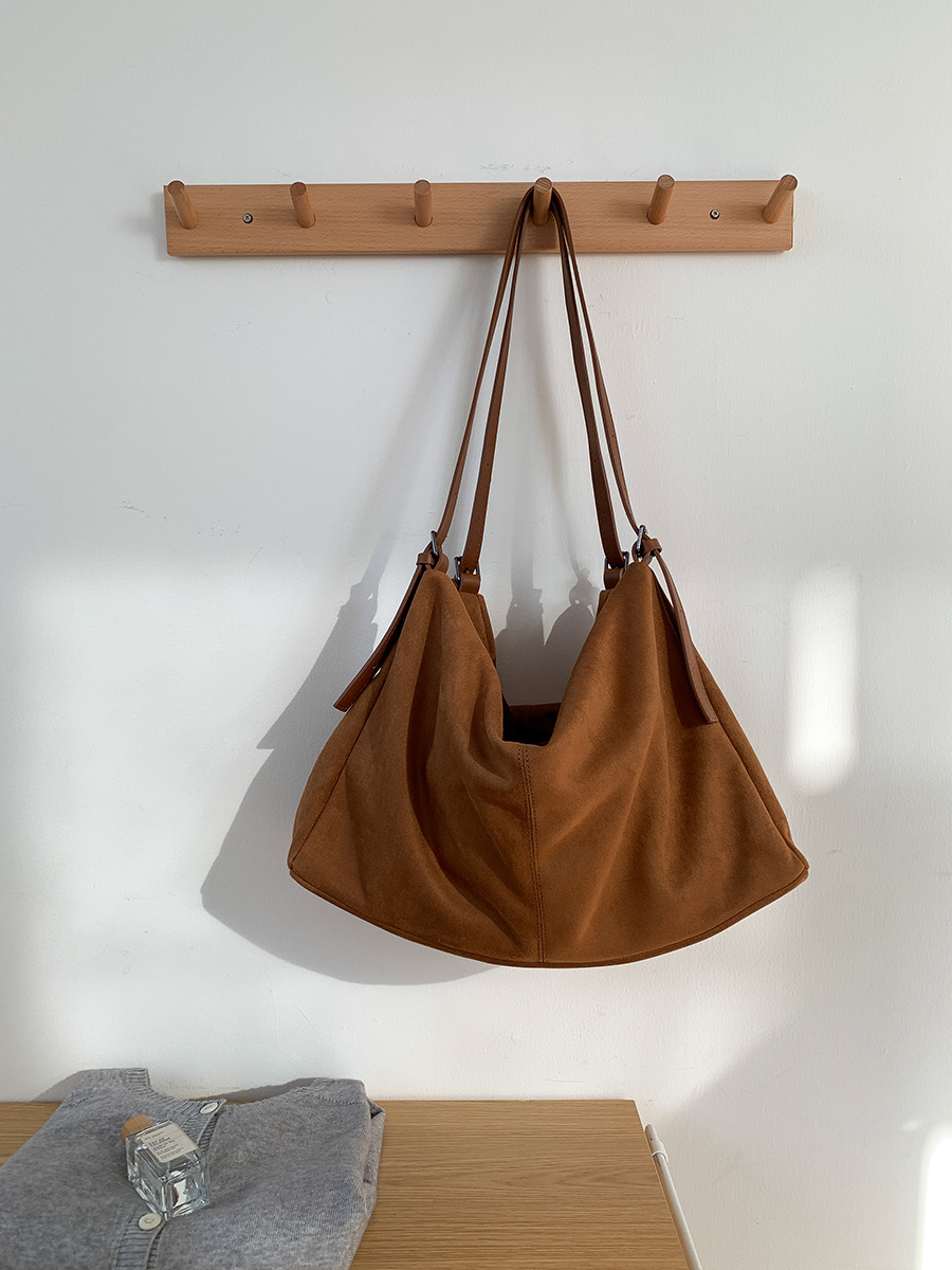 ✔高級軟皮麂皮絨質可調雙肩帶托特包