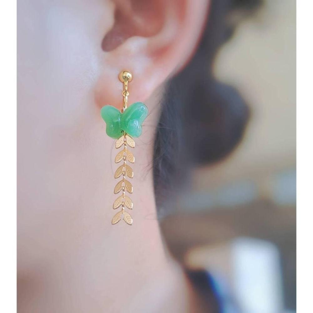 ❖𝔞𝔠𝔠𝔢𝔰𝔰𝔬𝔯𝔶❖夾式耳環↝ 翠綠 蝴蝶 琉璃 垂吊 耳環 耳夾 夾式 無耳洞 螺旋夾 飾品 夾式耳環