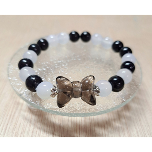 珠材:黑龍晶(藍閃石)、白瑪瑙