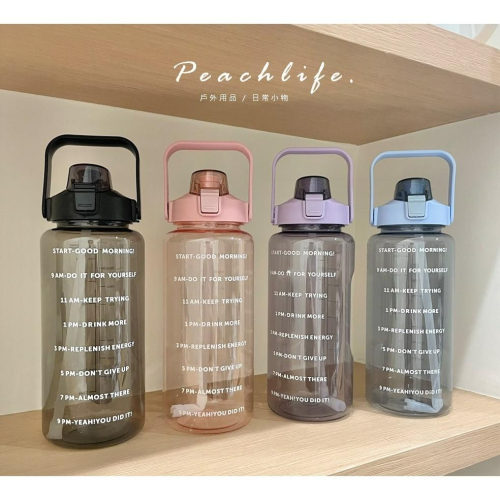 ♡Peachlife.♡「台灣現貨」大容量水壺2000ml 運動水壺 運動水瓶 每日目標水壺 透明水瓶 水瓶