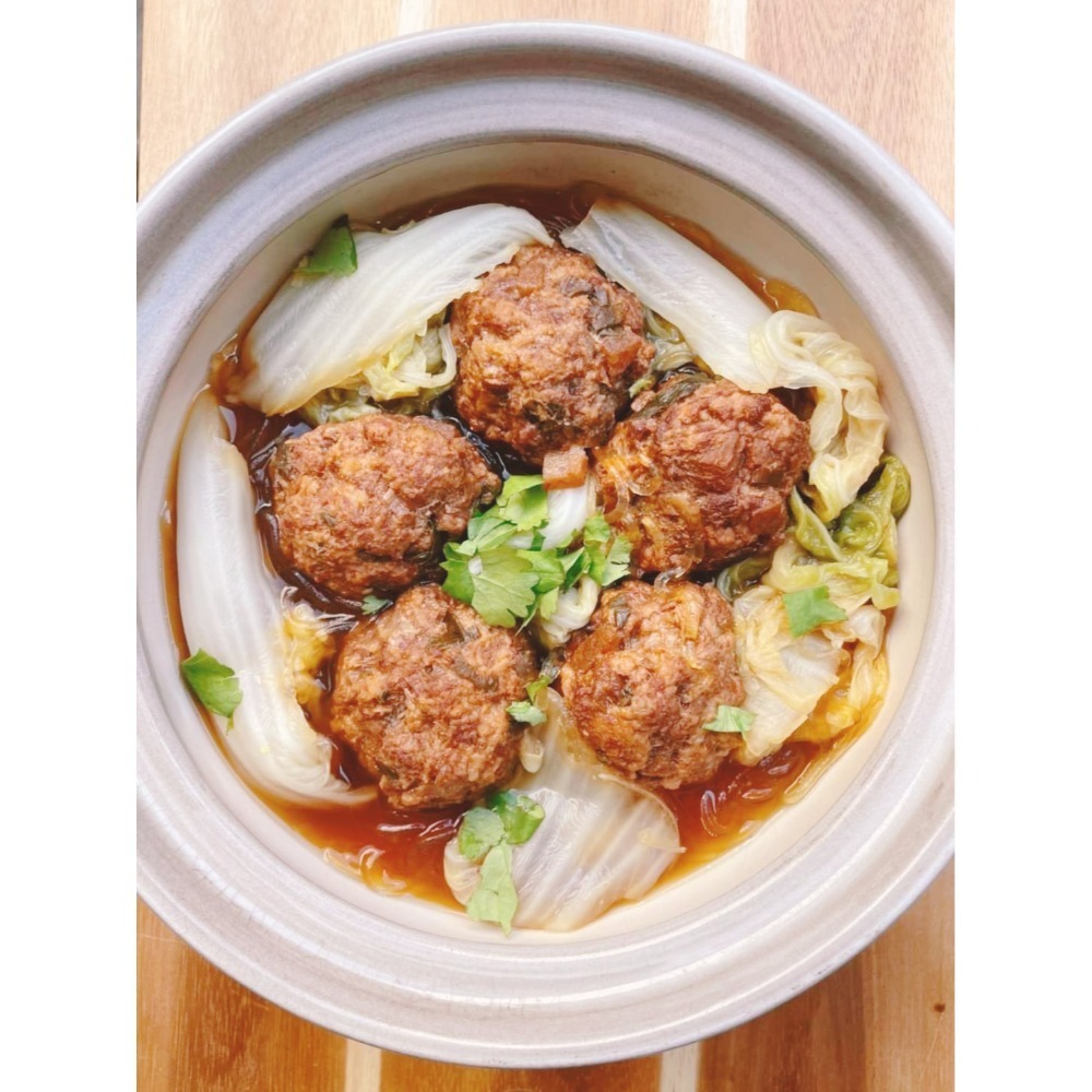 也可以煮成火鍋,先把大白菜煮軟,再加獅子頭&快煮的冬粉,就是ㄧ鍋美味的料理了