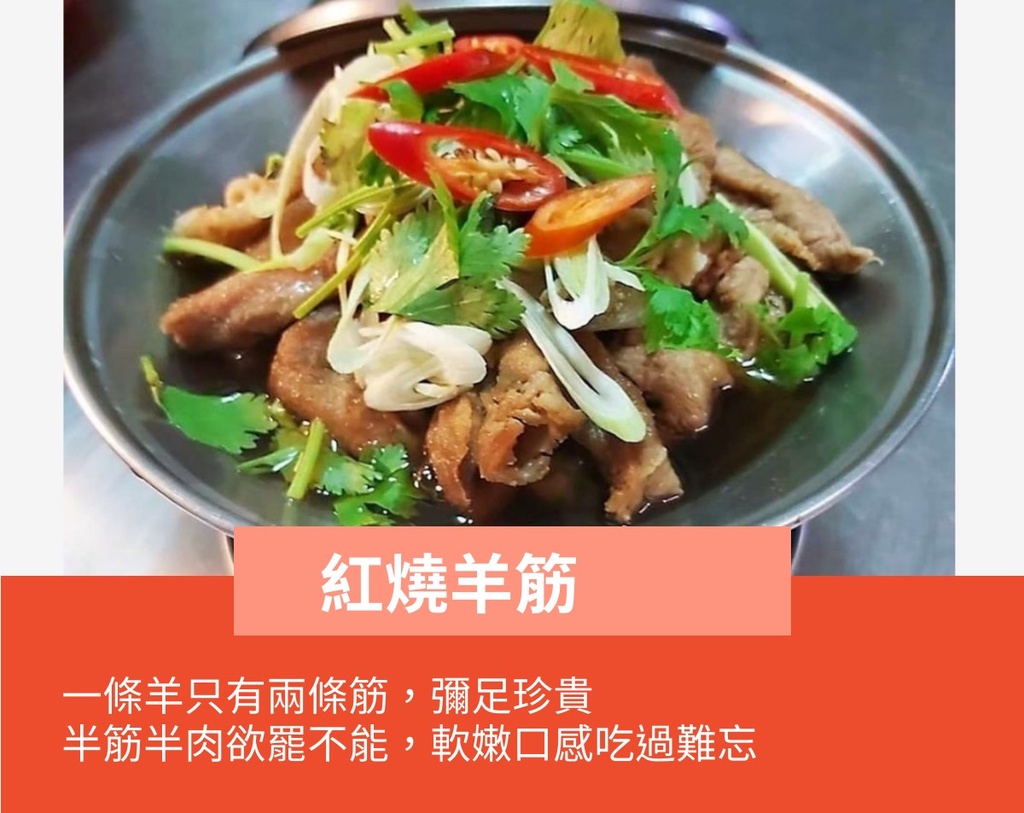特選軟嫩羊筋肉,佐以沙茶提味,製作成紅燒口味。