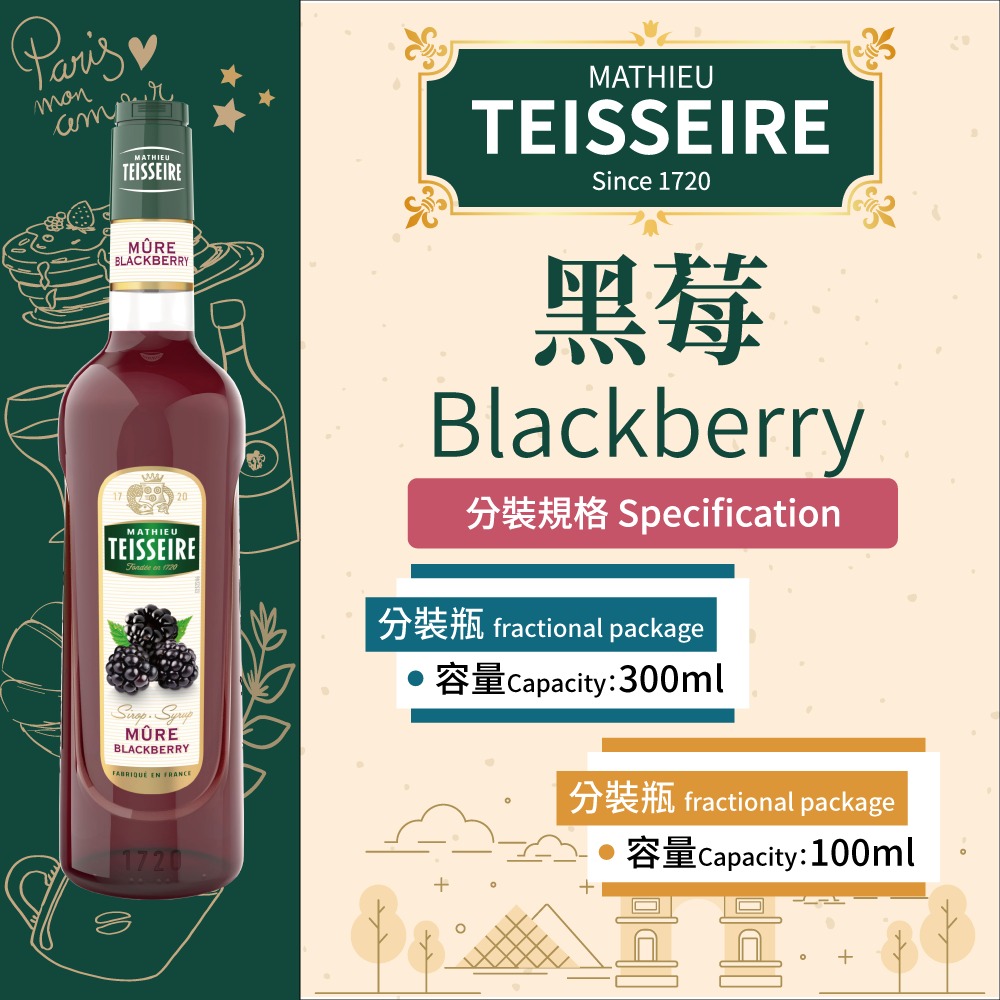 TEISSEIRE 法國 果露 黑莓 Blackberry Syrup 糖漿 300ml 100ml 分裝瓶 fractional package