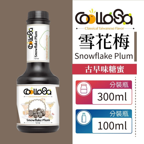 Coollosa 酷樂夏 雪花梅 Snowflake Plum Syrup 糖蜜 糖漿 300ml 100ml 分裝瓶 台灣風味
