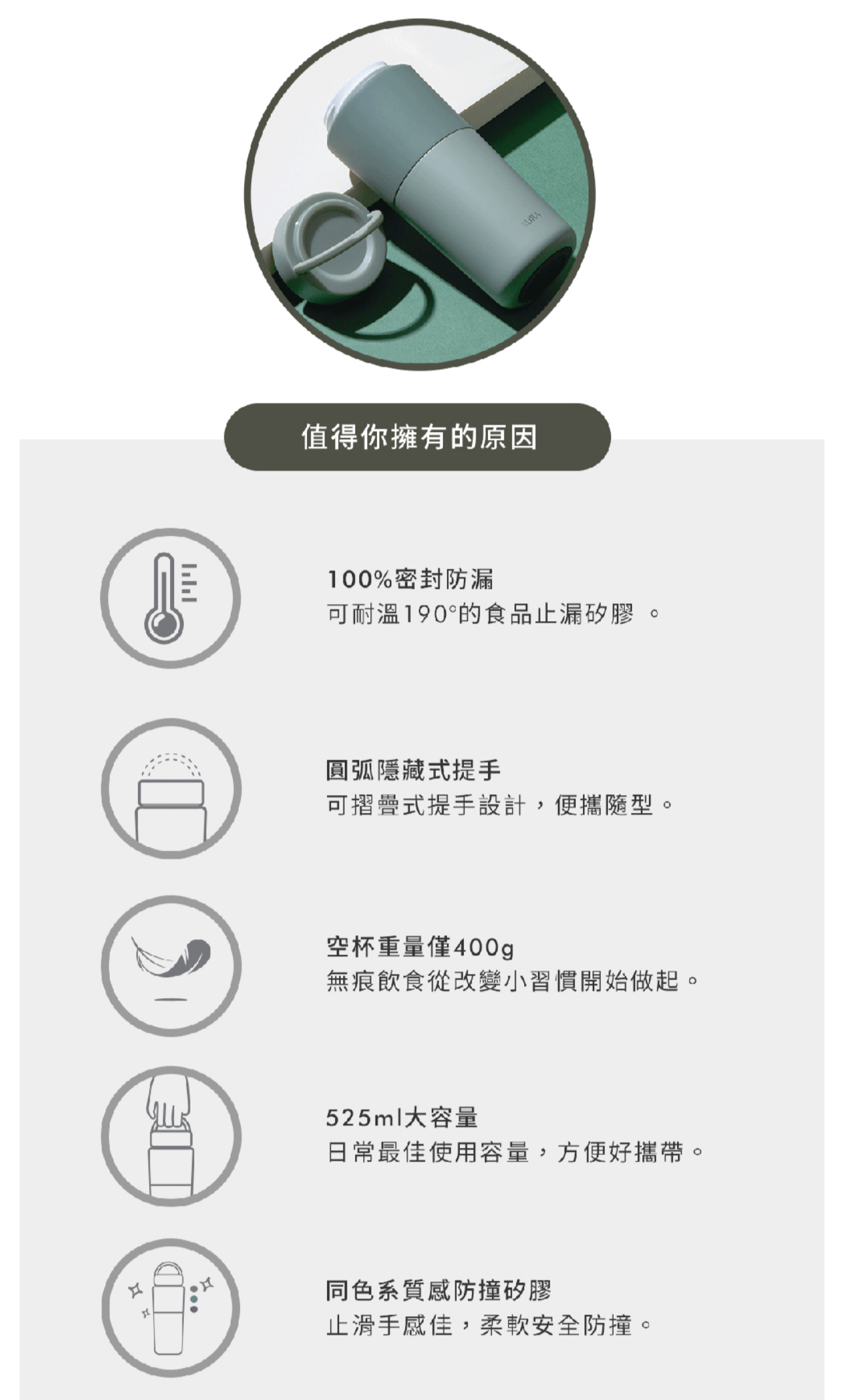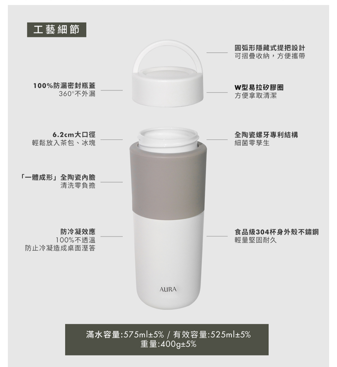 AURA 艾樂 隨行提手真陶瓷保溫杯525ML(保溫瓶)