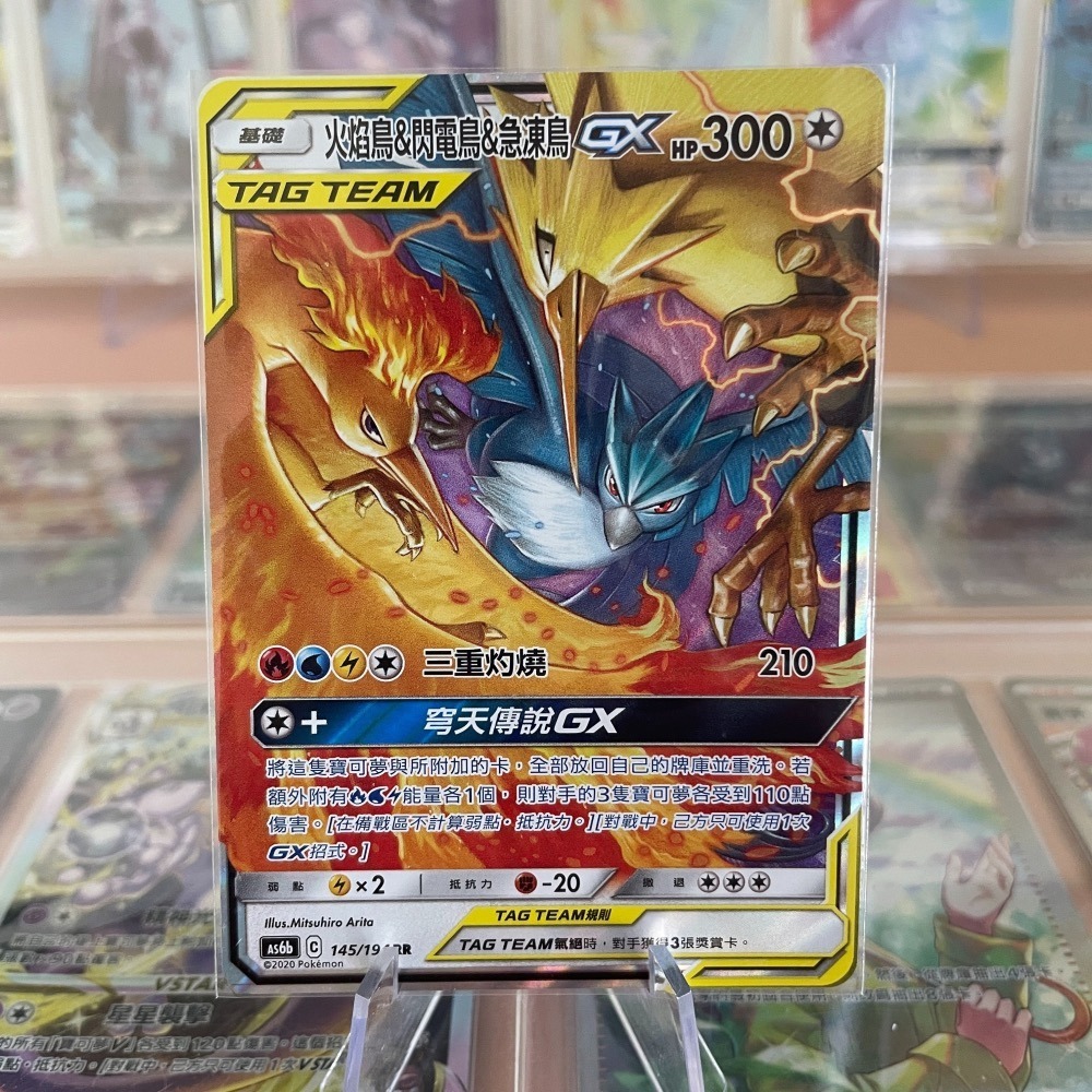 2020 中文 閃卡 火焰鳥&閃電鳥&急凍鳥GX AS6b 145/194 RR 寶可夢卡牌