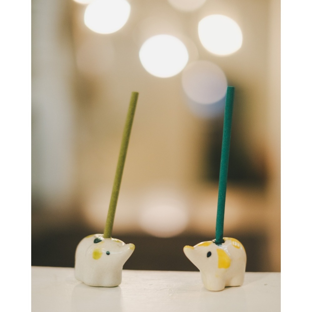 從盒子拿出一支,點燃尖端然後放於小象香座上。