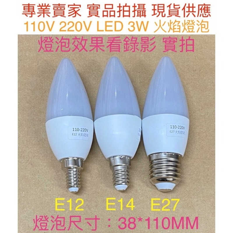 商品名稱 LED 火焰燈泡 110V 220V E12 E14 E27 3W 蠟燭燈泡 神桌燈 錫燈 神明燈 蓮花燈。